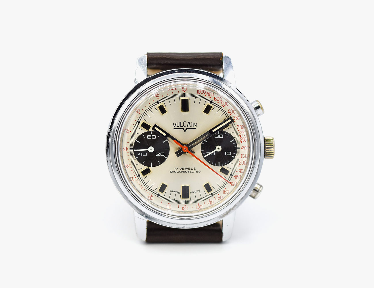 I’m obsessing over this beautiful vintage Vulcain Panda. It’s manual winding Valjoux 236 movement was recently overhauled, restored to perfect working condition. I love the simplicity of this watch — it’s nothing fancy, just pure function with some handsome elements, such as the subtle red accents on the outer rim of the dial. What’s nice about 1960s-era watches is the size: this one is just 36mm in diameter and only 14mm thick. It’s perfect. — Hunter Kelley, Associate Designer
