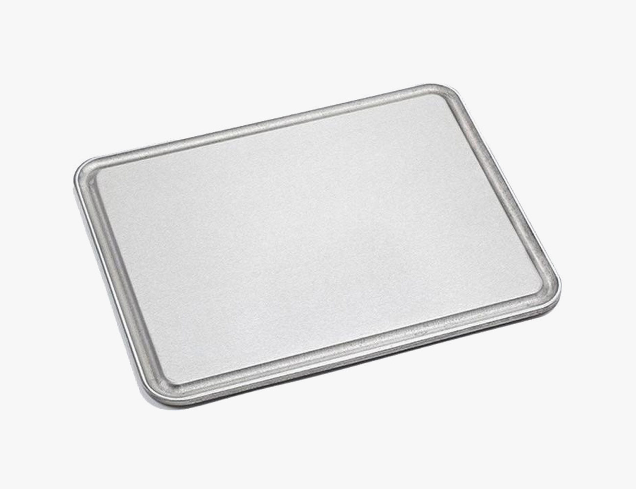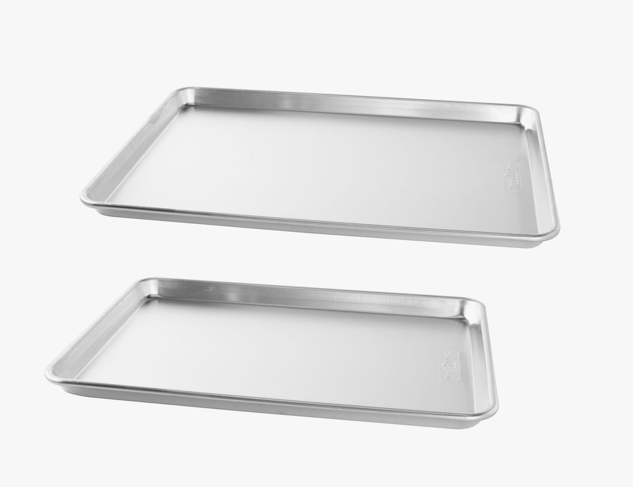 These sheet pans are widely used in professional kitchens because they’re heavier than the flimsy pans that come when you buy an oven. Made of aluminum, they’re also quick to heat.