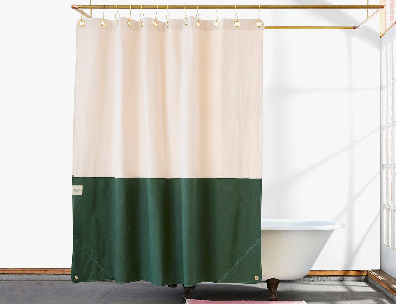 No one notices a shower curtain unless it’s either dirty or dirt cheap. This two-toned, Brooklyn-made curtain rocks pure brass grommets and a sturdy canvas material, ensuring it stands out just enough.