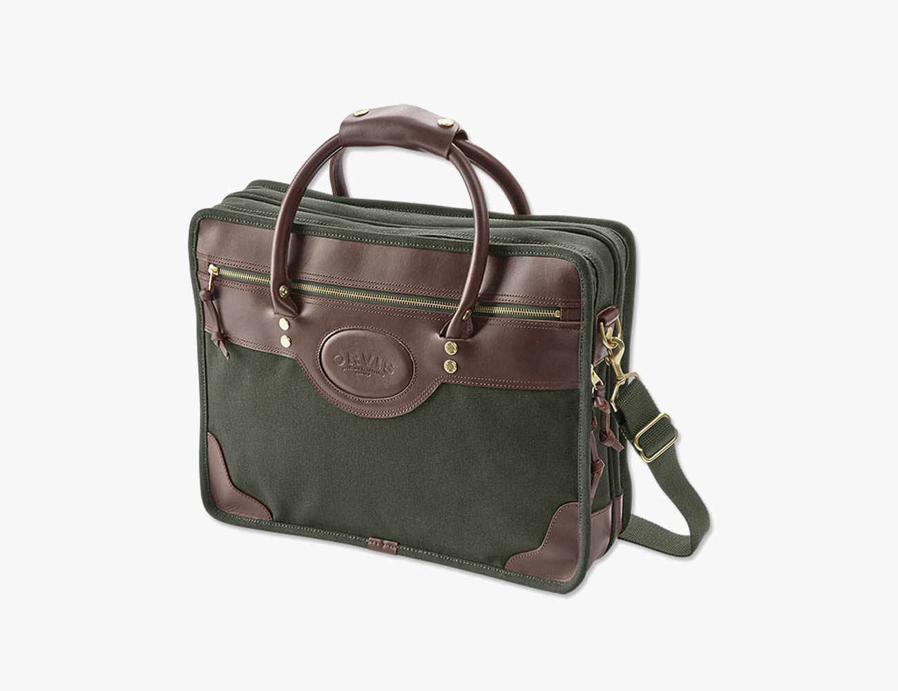 Perhaps the closest to the stiff rectangular original, Orvis’s Battenkill Briefcase exchanges hinges and latches for canvas and locking zippers. Its build and aesthetic are very much in tune with the brand’s sportsman roots.