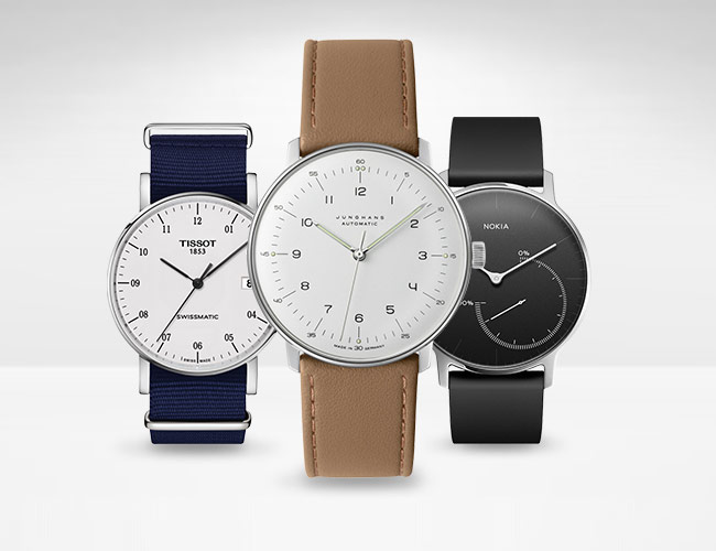 In buying your first professional watch (or gifting one to your graduate), strive for something subtle with a hint of personality that reflects both yourself and the atmosphere in which you’ll be working. It doesn’t have to cost a semester’s tuition, too. There are some great pieces with far more attainable price tags — ranging from just over $100 to just under $1,500 — that look at home in the workplace while conveying just the right amount of humility.