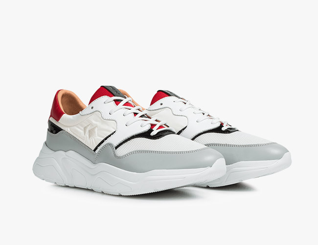 The Avalanche is made by hand in Italy with calf leather, suede and patent leather, with a mesh upper and nylon stitching (the mix of materials meant as an homage to Italian craftsmanship). It uses an EVA outsole, which is basically just a lighter, more shock-absorbing rubber replacement, and launches in three colorways — black, cream and a grey-red mix.
