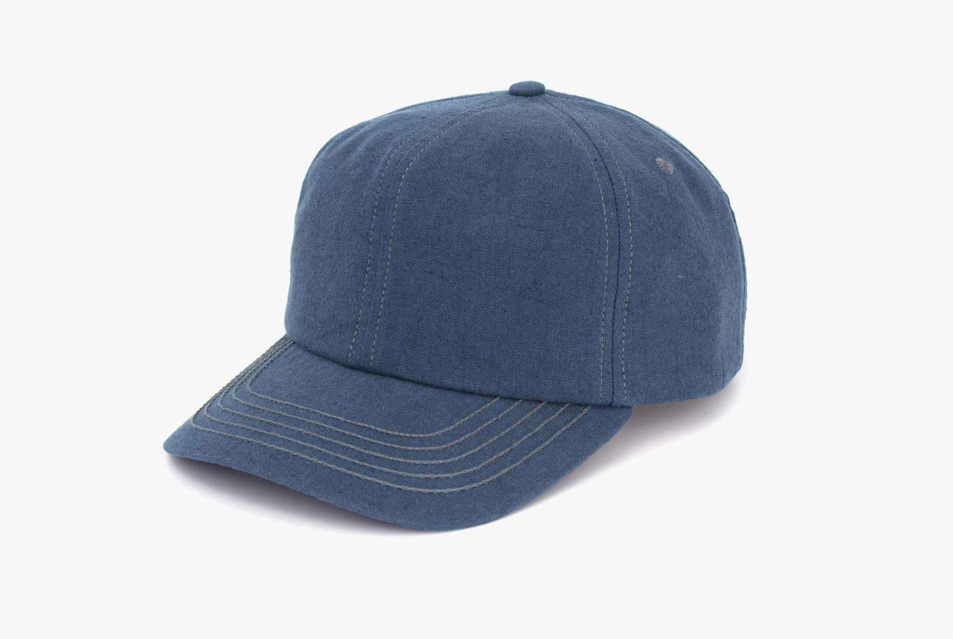 Made from Japanese linen, this cap features an adjustable leather strap and a short brim. Exterior branding is limited to a small leather tab on the back of the hat.
