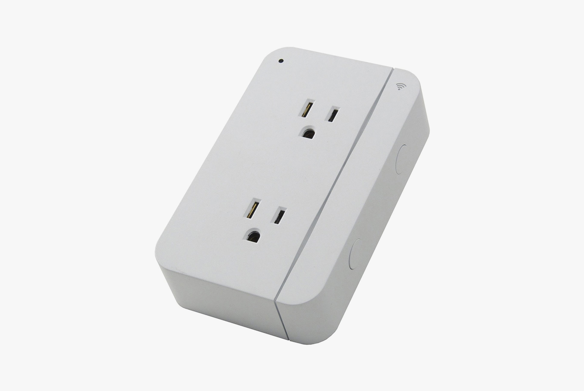 This is our favorite HomeKit-friendly smart plug. It features two outlets, plus a USB port on the side to charge another device. Adjacent to both outlets are corresponding buttons that you can physically press to turn the outlets on/off, which will come in handy should you misplace your iPhone. The outlet also had LED lights built-in — it can effectively turn the outlet into a night light.
