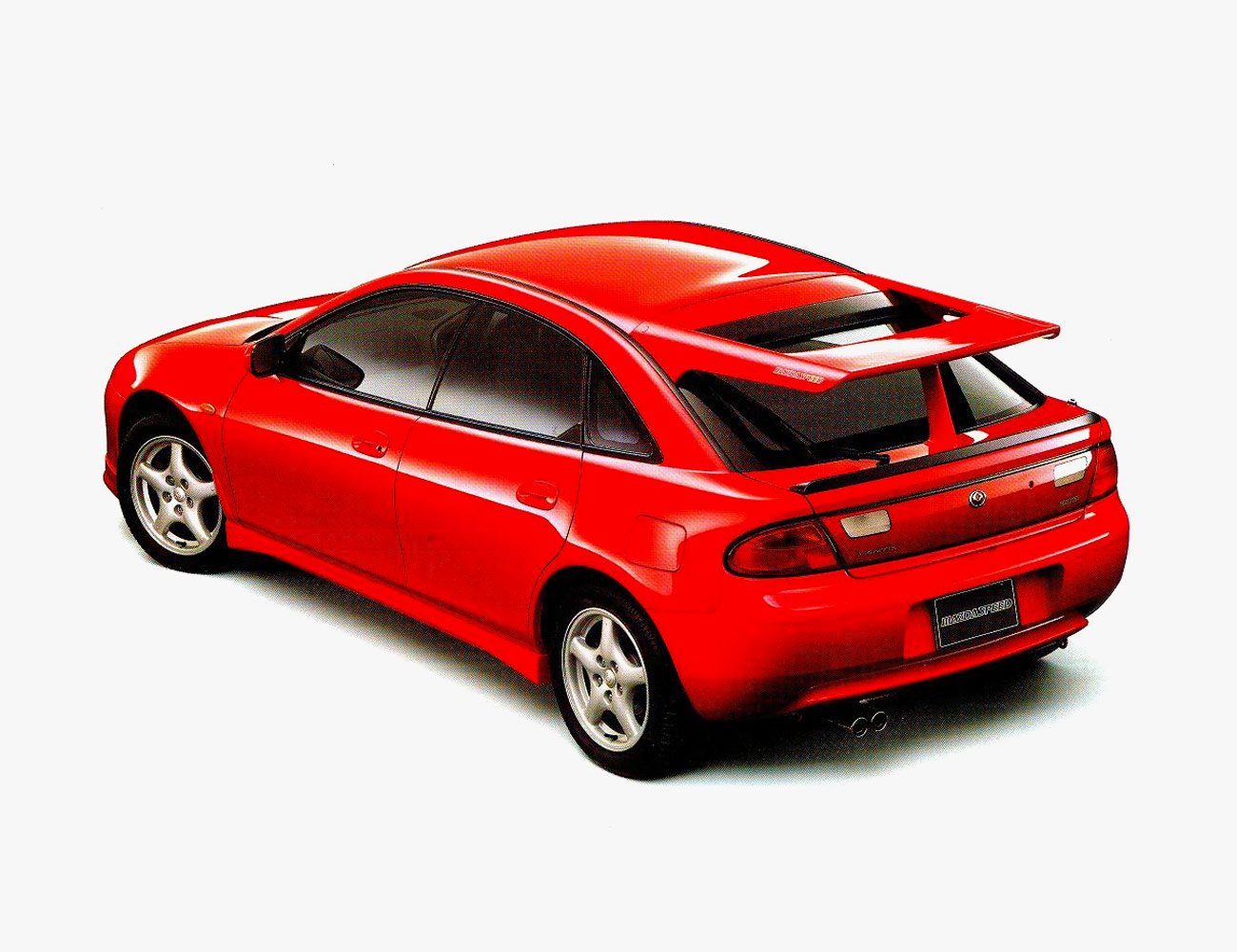 Debuting in August 1993, the Lantis was Mazda’s compact “four-door coupe” (a term Mazda used more than a decade before Mercedes popularized the concept with the CLS) that competed amongst seemingly countless other quirky compact cars in the Japanese market in the early ’90s. While the basic, four-pot Lantis was nothing more than a somewhat zany-looking econobox, in Type R guise it was a tiny sleeper thanks to a 168-horsepower, 2.0-liter V6 (with an 8,000rpm redline!) shoved into the front, sending all the power to the front wheels.