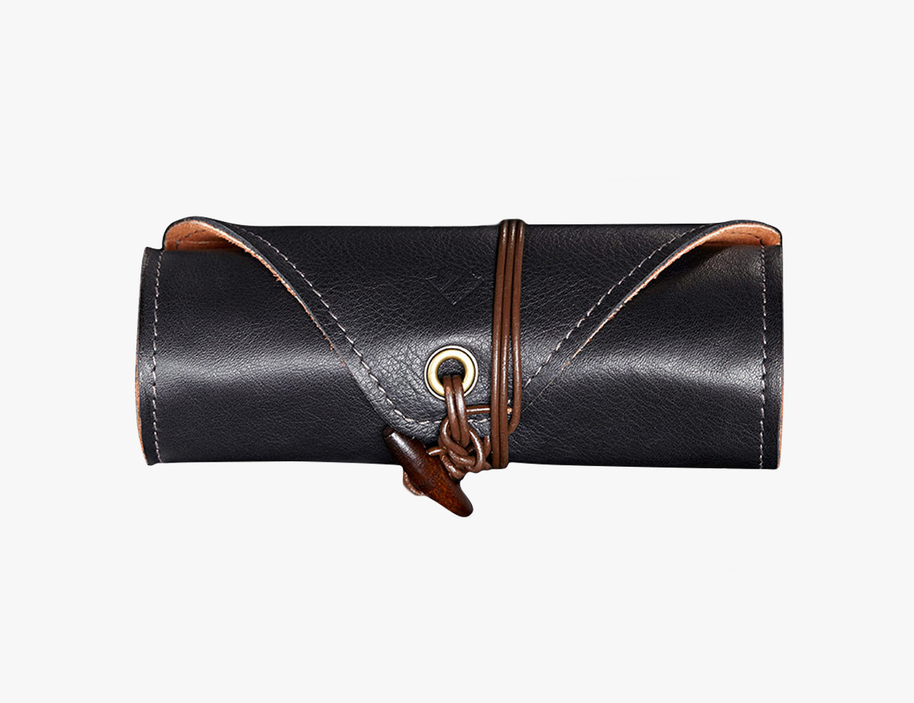 Another handsome design that can be configured to fit four or six watches, this roll is handmade in the US and features a black leather exterior and a supple tan suede interior that won’t scuff up any of your timepieces. The closure is comprised of a leather chord, a brass rivet and a wooden toggle.