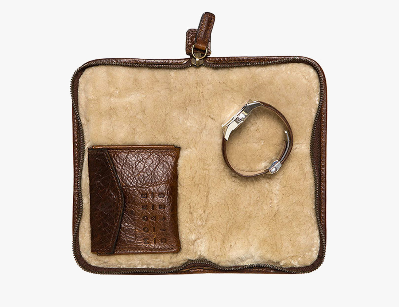 If you really want to make sure you’re watches are cradled in the plushest way, how about a case made with a shearling lining? This case from American leather goods purveyor Moore & Giles has that, along with an exterior made from nubuck bison leather. While the additional interior pocket is meant for small items like earrings and cufflinks, we see no reason why you can’t pack a couple of extra NATO straps in there.