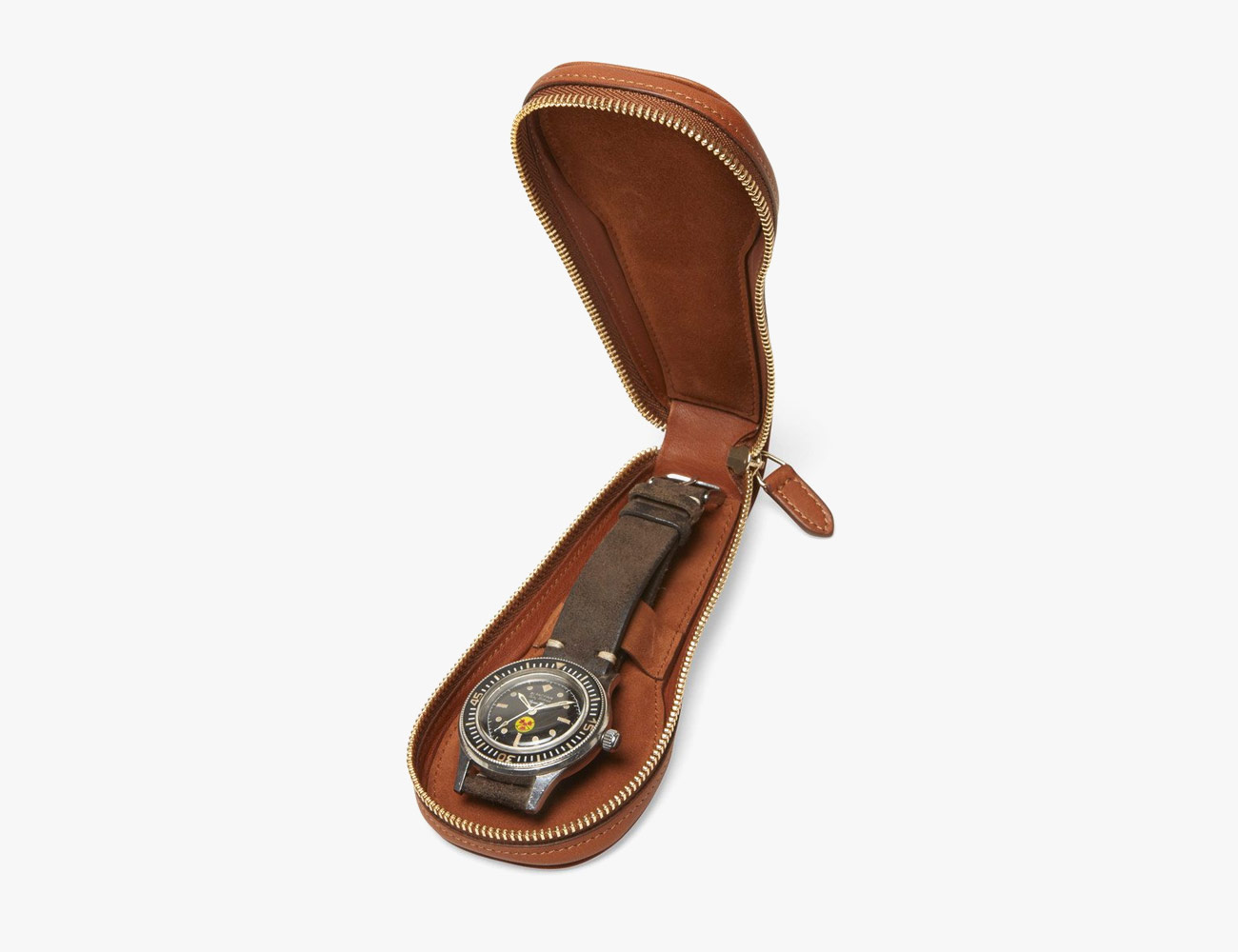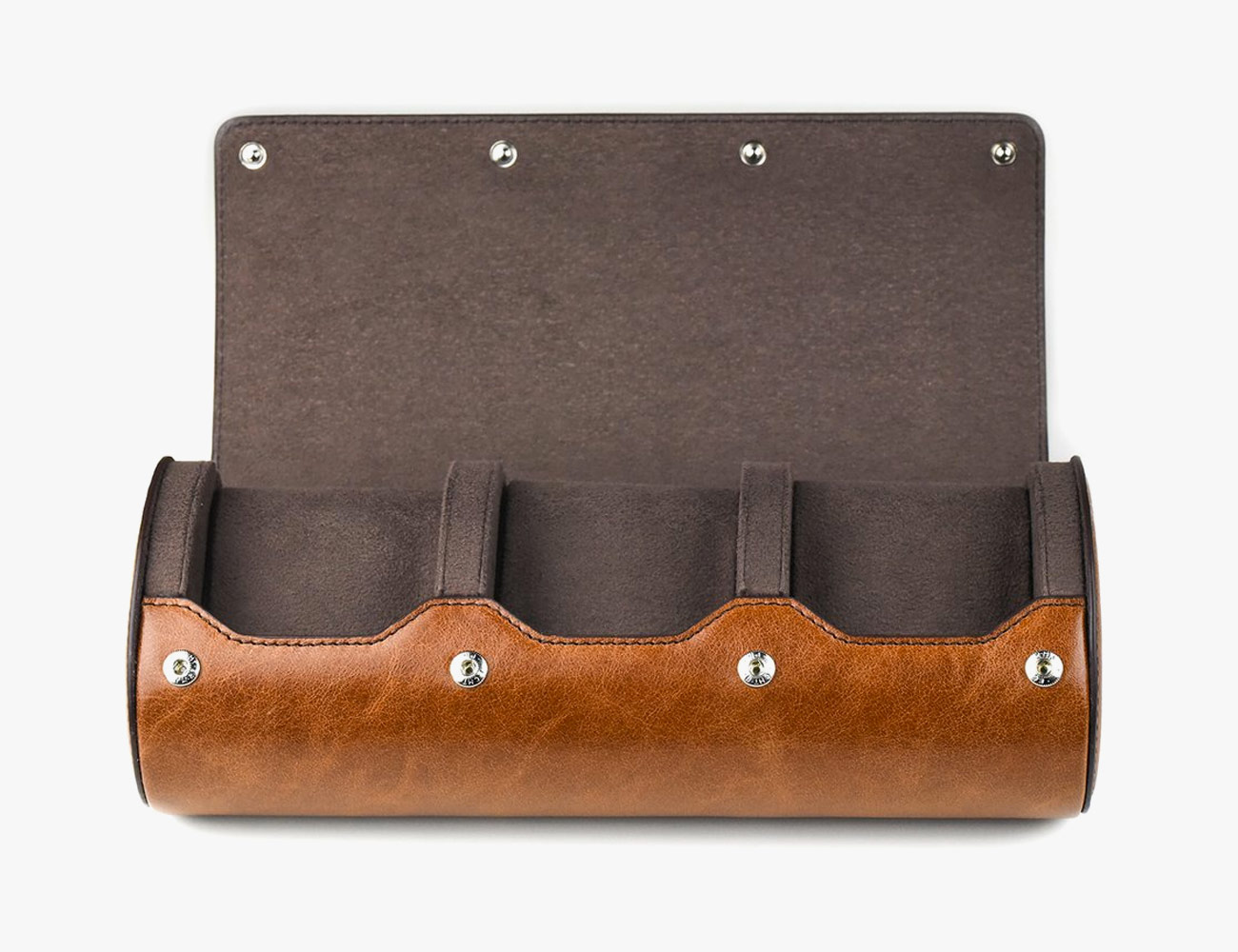 Convoy Co’s watch roll represents one of the better values on this list – it fits four watches while an additional pocket can carry extra straps, spring bars and a strap-changing tool. Better yet, it’s made from Italian leather that will patina with age.