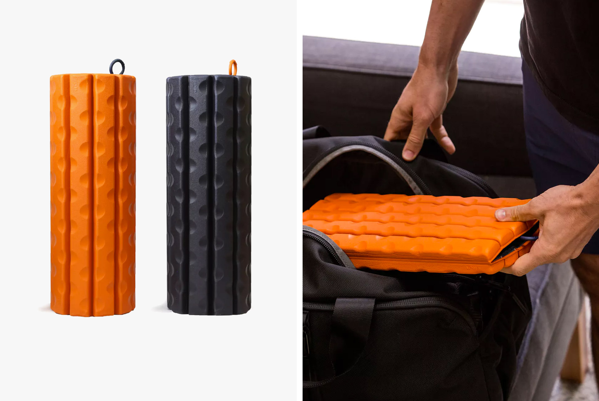 For all its benefits, the foam roller is an incredibly simple tool (it’s just a tube). It does have one major downfall though, and that’s portability. Sure, foam rollers with hollow interiors can be stuffed full of clothing and packed in a duffel, but it isn’t the most refined solution.
