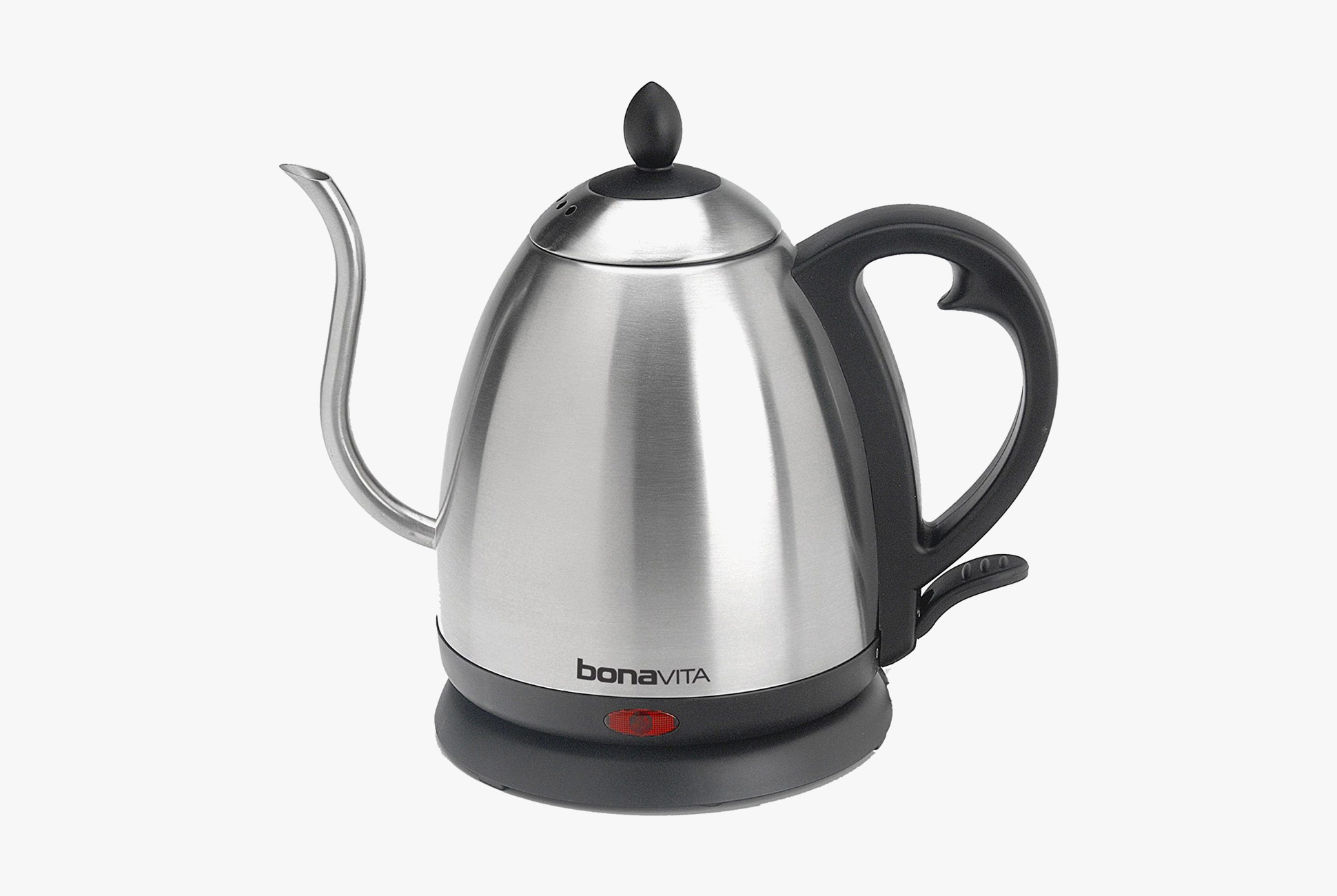But just after choosing your pour over mechanism (the most popular being Chemex, Hario and Kalita), you need something to pour the water onto the grinds — and no, dumping the whole lot of water all at once is not a great idea. A full dump of water doesn’t allow your ground beans to aerate, de-gas or bloom, all fancy terms that, when the appropriate time is taken to pour water over with a bit more finesse, make for much better cups of coffee. Finesse is best achieved by way of a kettle with a gooseneck spout (basically a very thin spout), and that’s exactly what this heavily discounted Bonavita Electric Kettle has.