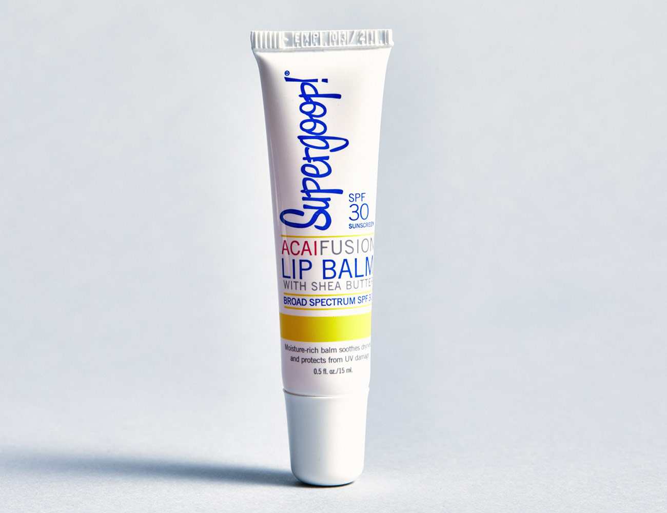 Best Lip Balm with SPF: Supergoop! Fusion Lip Balm Broad Spectrum SPF 30 – Acai