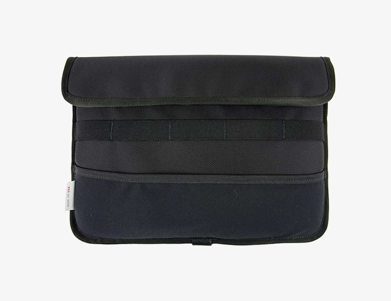 The good: It’s kind of a tech dopp kit, able to efficiently store your MacBook Pro, wall adpater and a number of cables. The interior is made out soft and padded nylon, while the exterior is made out of tough ballistic mesh. It’s slim and won’t take up much room in your bag. It’s also completely bespoke.