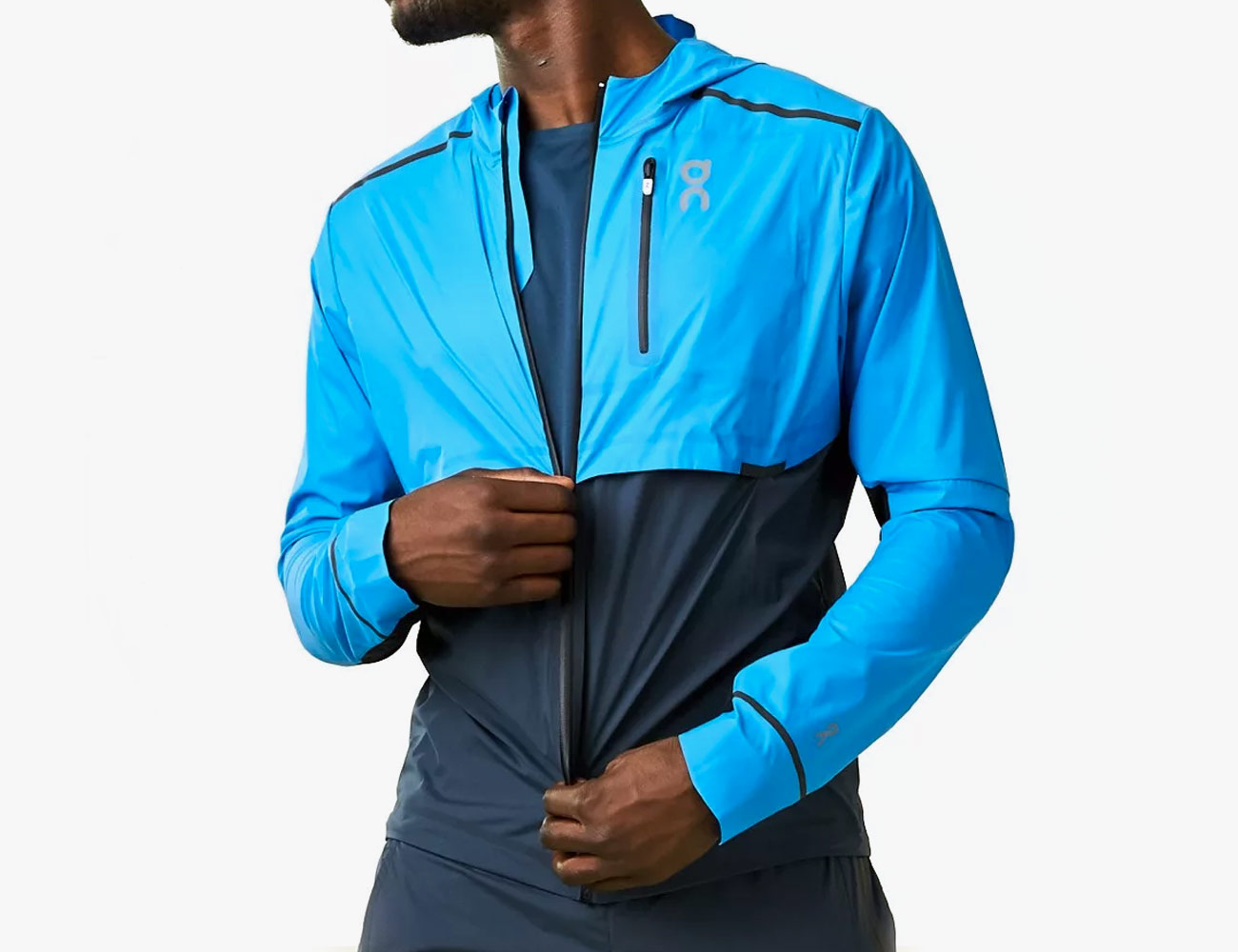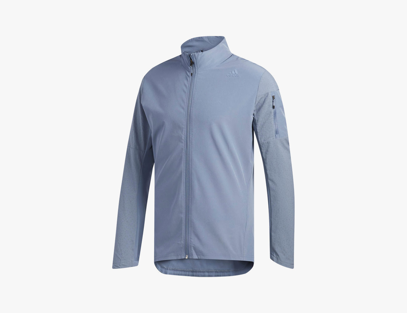 Ideal for warm and wet weather, the Supernova jacket is Adidas’s finest running jacket. It has all the reflective detailing you could need along the arms for safety. There’s no hood, just a collar, but when zipped up fully, you can easily tuck your chin into the top of the jacket for added protection from the elements. The tail of the coat is slightly longer, which provides a bit of added coverage and protection from the wind and rain.