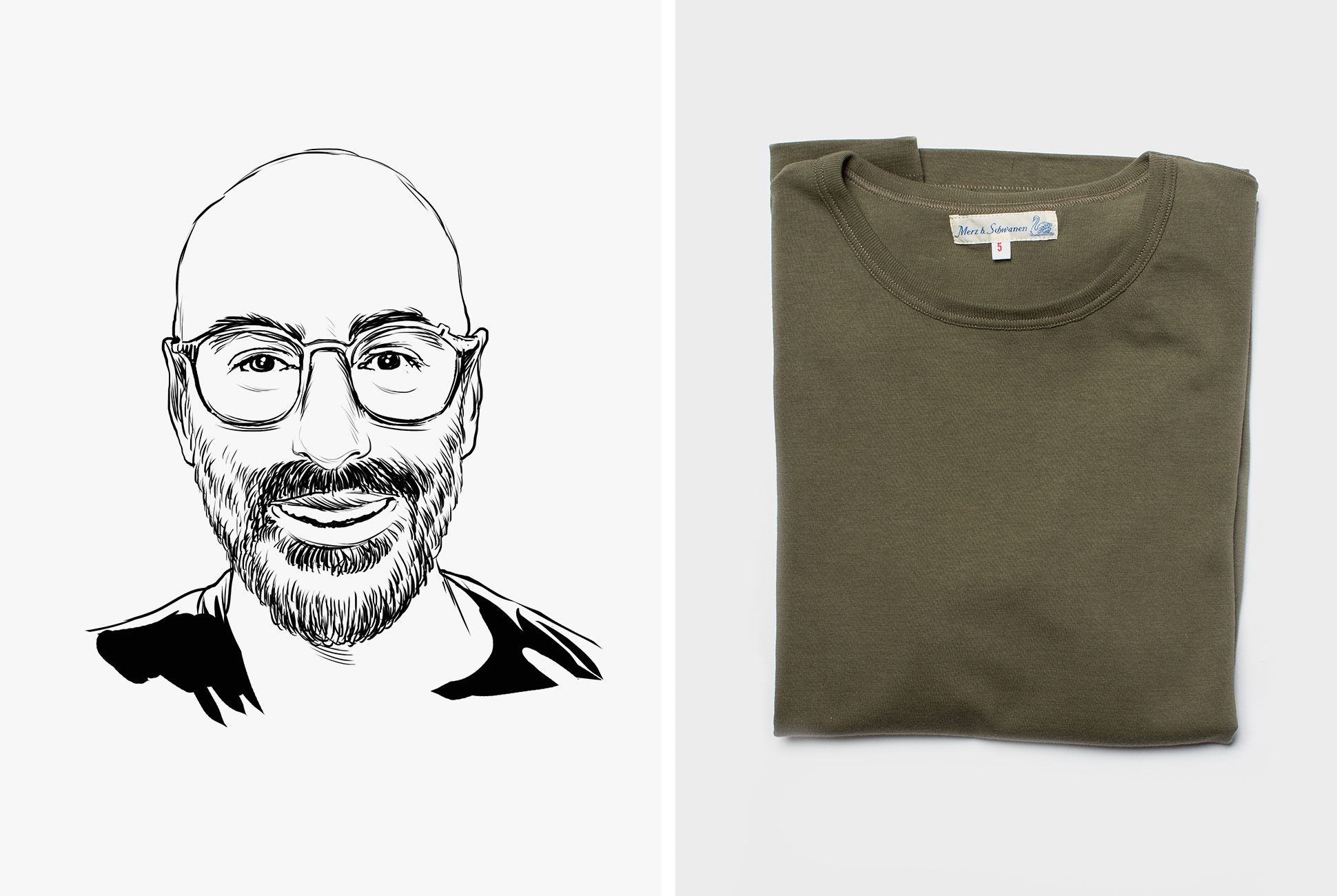 “My favorite t-shirt of the past year is Merz b. Schwanen’s high-end two-needle version of their basic t-shirt. The fabric is unreal, and I don’t think most people realize how nice a t-shirt fabric can be until they handle one of these. It’s made of organic Greek cotton on a vintage loopwheeling machine in Germany. Fit is perfect, slim, and it has no exterior branding. I own multiples in nearly every color they’re made in.” — Kiya Babzani, Co-Owner of Self Edge