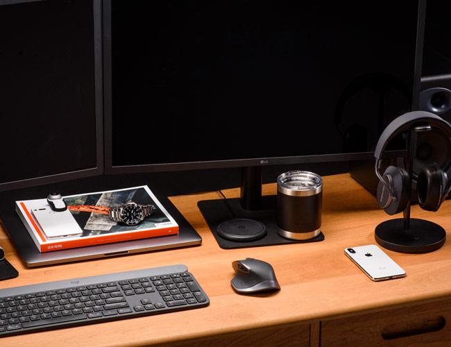 The Elgato Thunderbolt 3 Dock is a beast. It has two Thunderbolt 3.0 USB-C ports and allows you to connect your laptop to two 4K displays or one 5k monitor. Since it requires a wall outlet, it can charge your MacBook Pro (up to 85 watts) and along with other devices, like an iPhone, even if your laptop isn’t nearby. Additionally, it has three USB-A ports and a pair of 3.5mm audio jacks, one a mono mic input and one an amplified analog stereo output. It’s a pretty sleek-looking device.