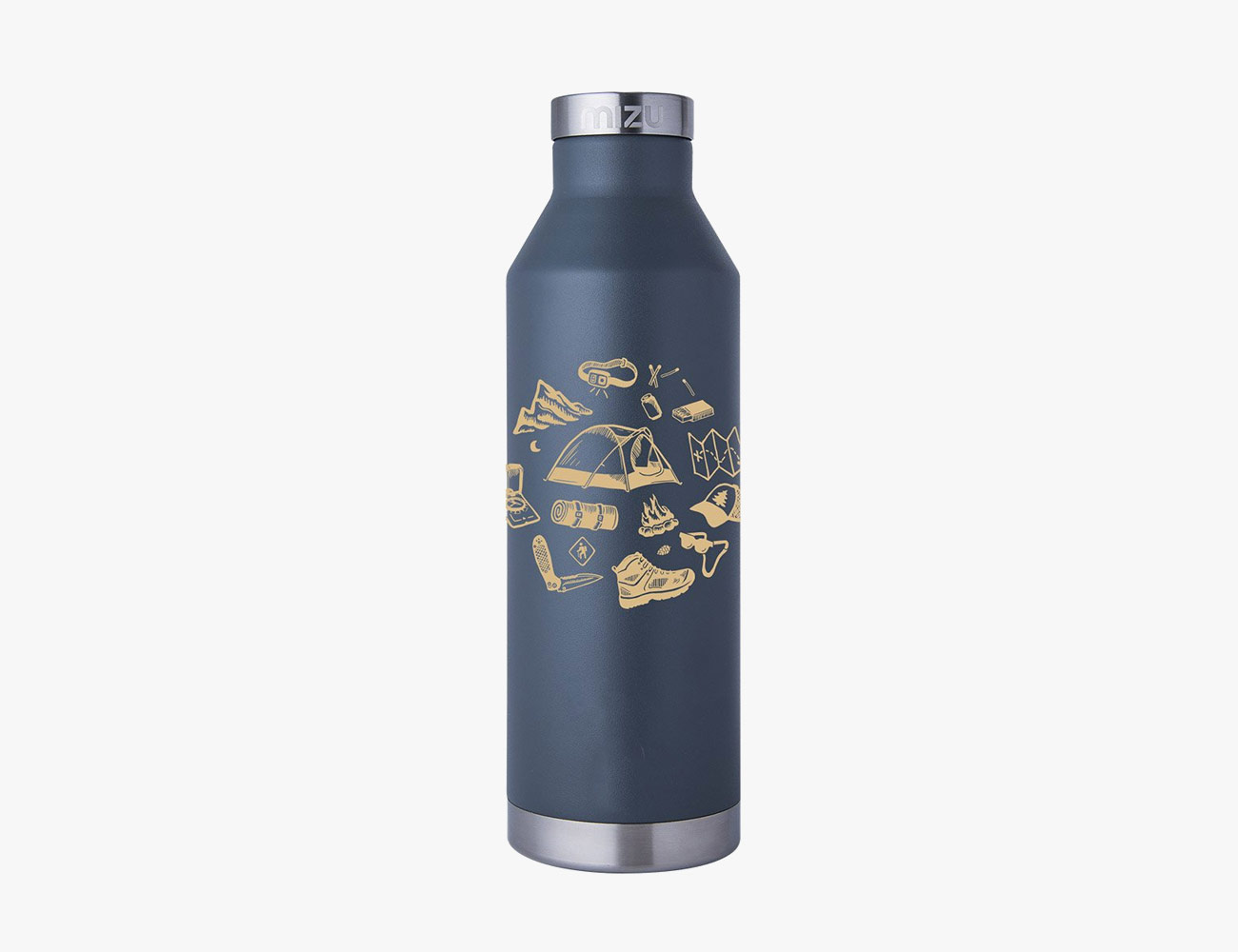 Like Yeti’s coolers, its everyday water bottle, the Rambler, is an ultra-durable vessel that’ll keep a beverage cold or hot for longer than it’ll take to finish. Yeti’s double-walled insulation is constructed of high quality 18/8 stainless steel. The leak-proof cap features a sturdy and simple handle design that has room enough for more than just a single finger, and its wide mouth means your nose won’t get in the way when your thirst calls for a chug. The Rambler’s uncomplicated cylindrical design and flush lid make it a standout among similar insulated bottles. (The Rambler is available in greater volumes too.)