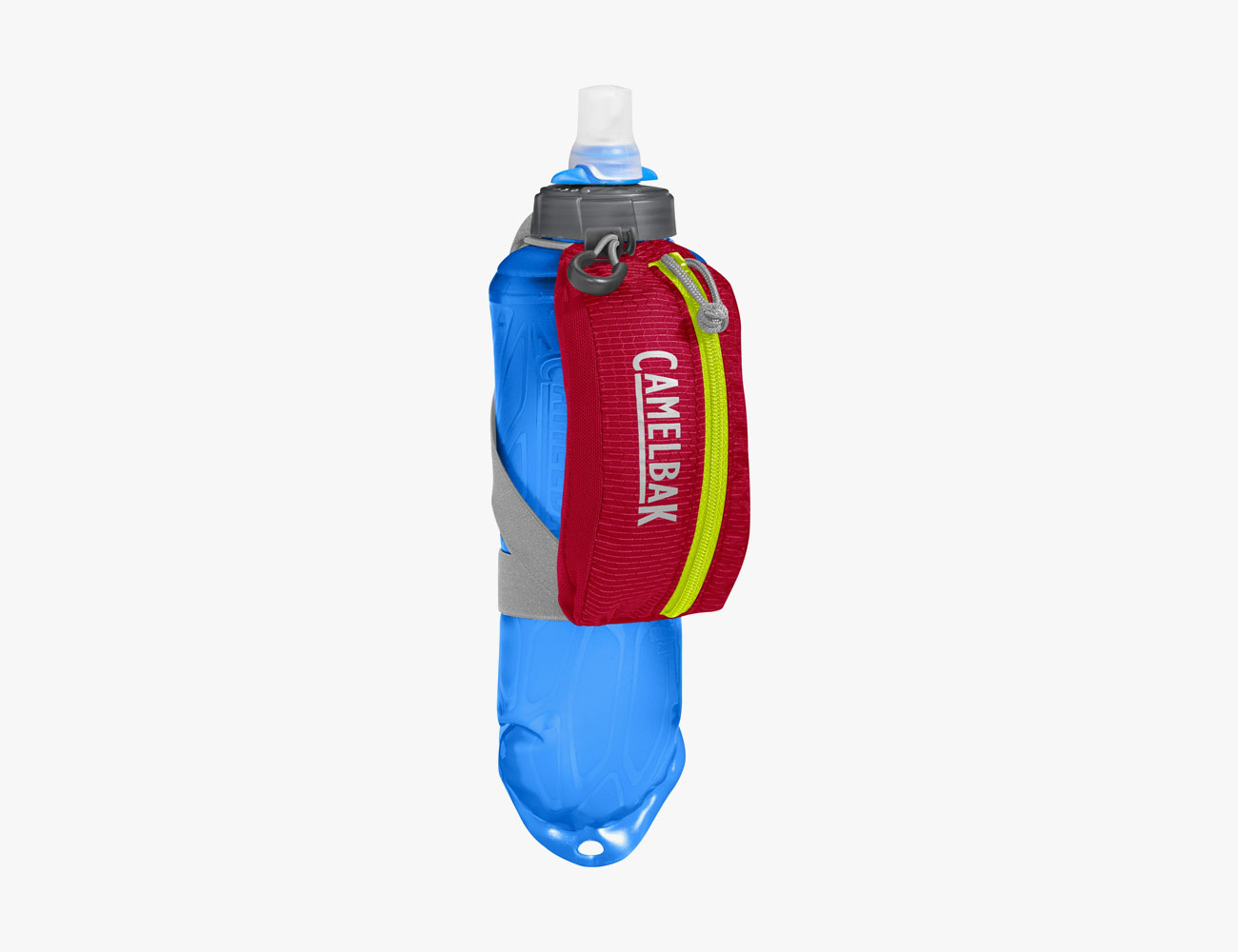 Technically, CamelBak’s Nano Handheld is precisely what its name implies: a handheld water bottle. But it also isn’t, because you don’t need to hold the bottle per se — CamelBak’s X-Grip straps the bottle securely in your hand, freeing you from the chore of an active grip and letting you focus on the run. The bottle itself is a lightweight 17-ounce soft flask that stows easily when empty, and on the opposite side of the hand strap is a small zippered pouch that has enough space for running essentials like your keys, a credit card or gels.