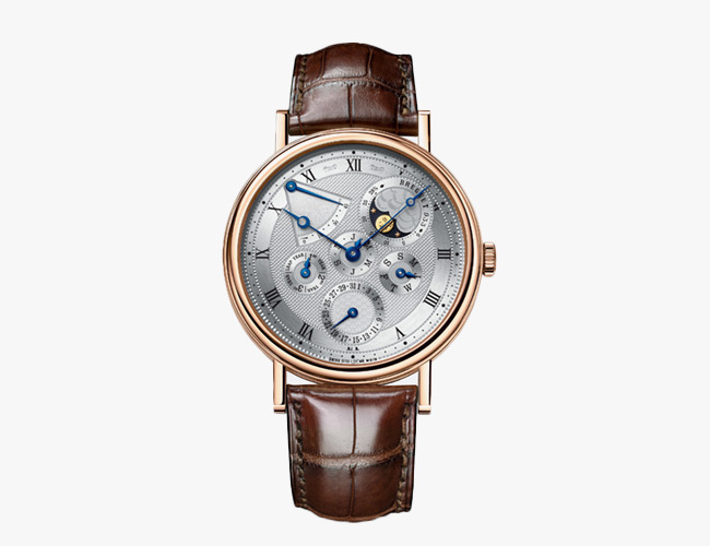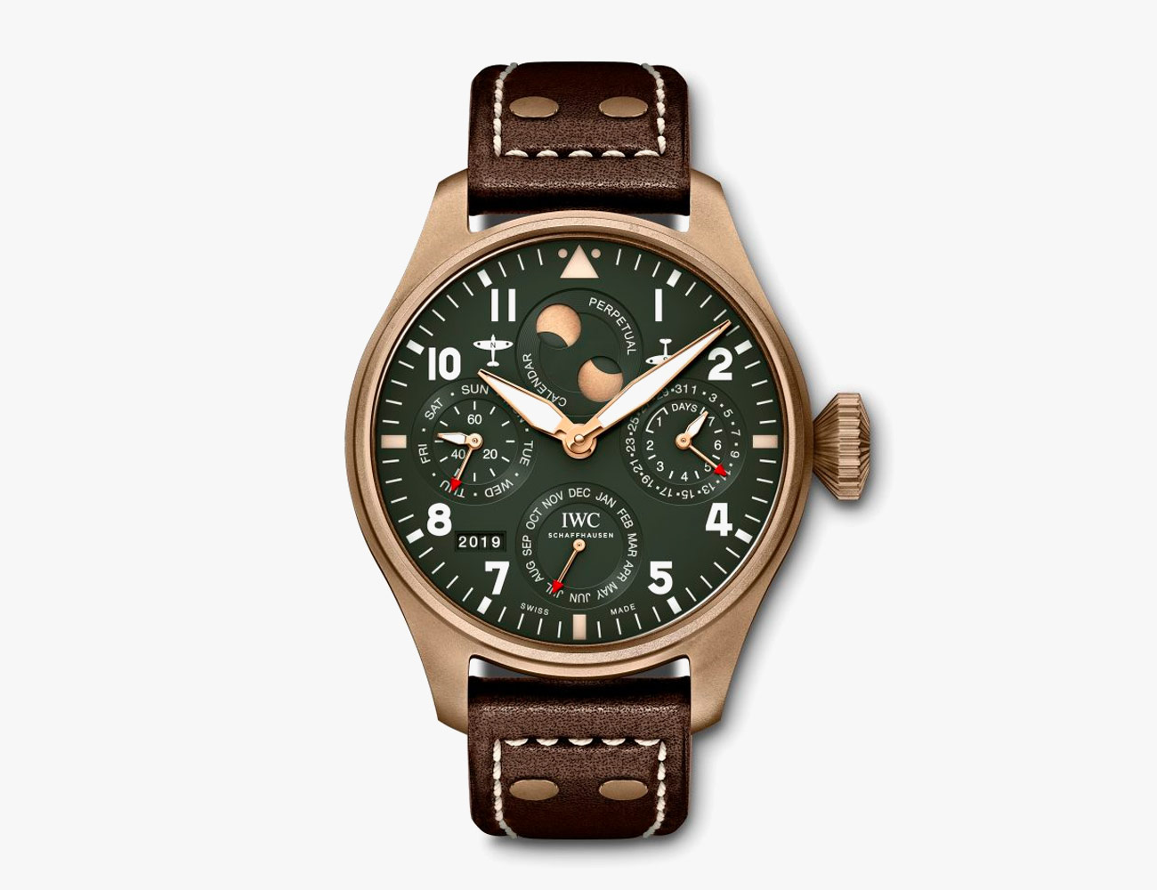 Most calendar watches are dainty affairs, well suited for wear under a starched monogrammed shirt cuff — but not this one. Try a flight suit. The undisputed brute of the category is the bronze-cased Top Gun Spitfire from IWC, which is one grand complication you can wear for all the 1,461 days of the leap year cycle with little fear of damaging it. It also shows a full digital year display (an IWC invention) and the moonphases in both the northern and southern hemispheres.