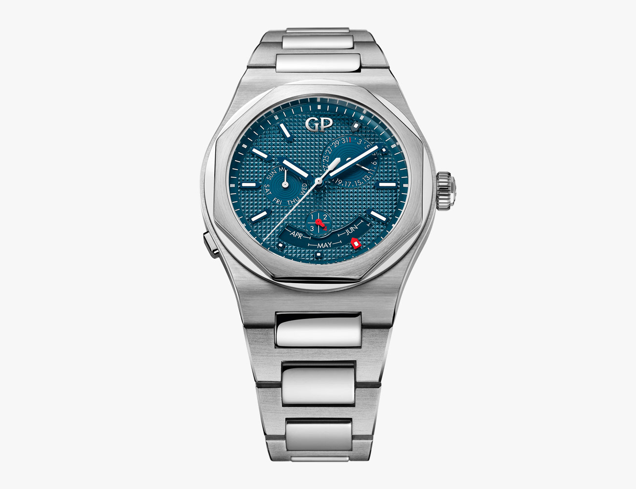 The Laureato family of Girard-Perregaux watches fits into a small niche of luxury steel sport watches that includes the Audemars Piguet Royal Oak and the Patek Philippe Nautilus. Its octagonal bezel helps it fit in even more, but the sporty design has become a palette for high horology complications as well. With its 42mm steel case, Clou de Paris-textured dial, unusual layout for the calendar information, and an in-house movement from one of the best names in the business, this watch combines a sporty vibe with some seriously refined and complicated watchmaking.