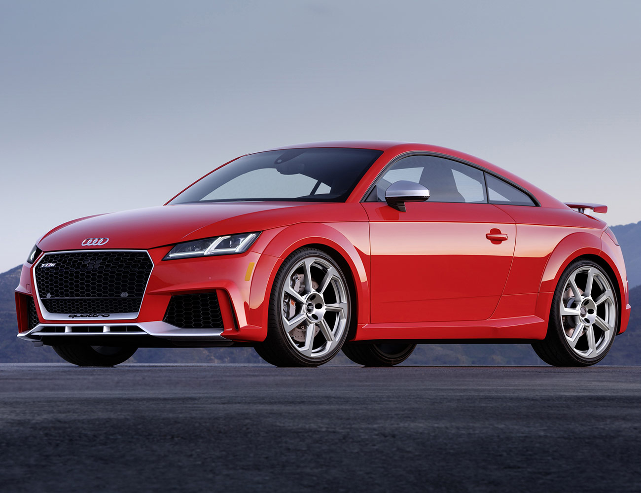 The Audi TT is a two-door sports car. It comes in both coupe and convertible roadster form. It comes with all-wheel drive and the 228 hp 2.0-liter I-4 Turbo. There are two higher performance versions. The TTS ($53,800) has the 288 hp version of the 2.0-liter I-4 Turbo from the Golf R. The TT RS ($64,900) upgrades to the 400hp 2.5-liter I-5 Turbo found in the RS 3.