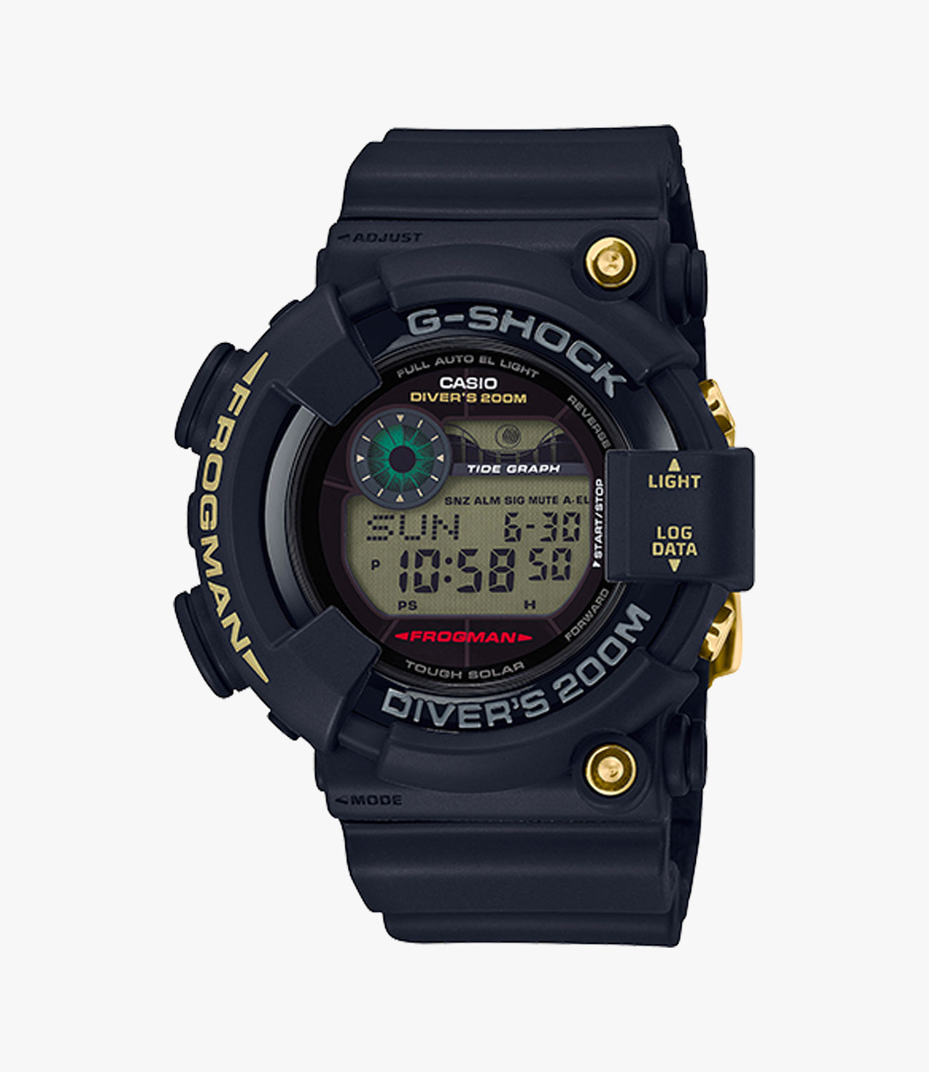 With all the goods you’ll need to dive in any conditions, the Frogman is the rare dive-oriented G-SHOCK. It’s not a dive computer, however, and shouldn’t be confused with one. It is, however, rich in dive style, with a 35th Anniversary colorway signed on the back by its designer, Erik Haze.