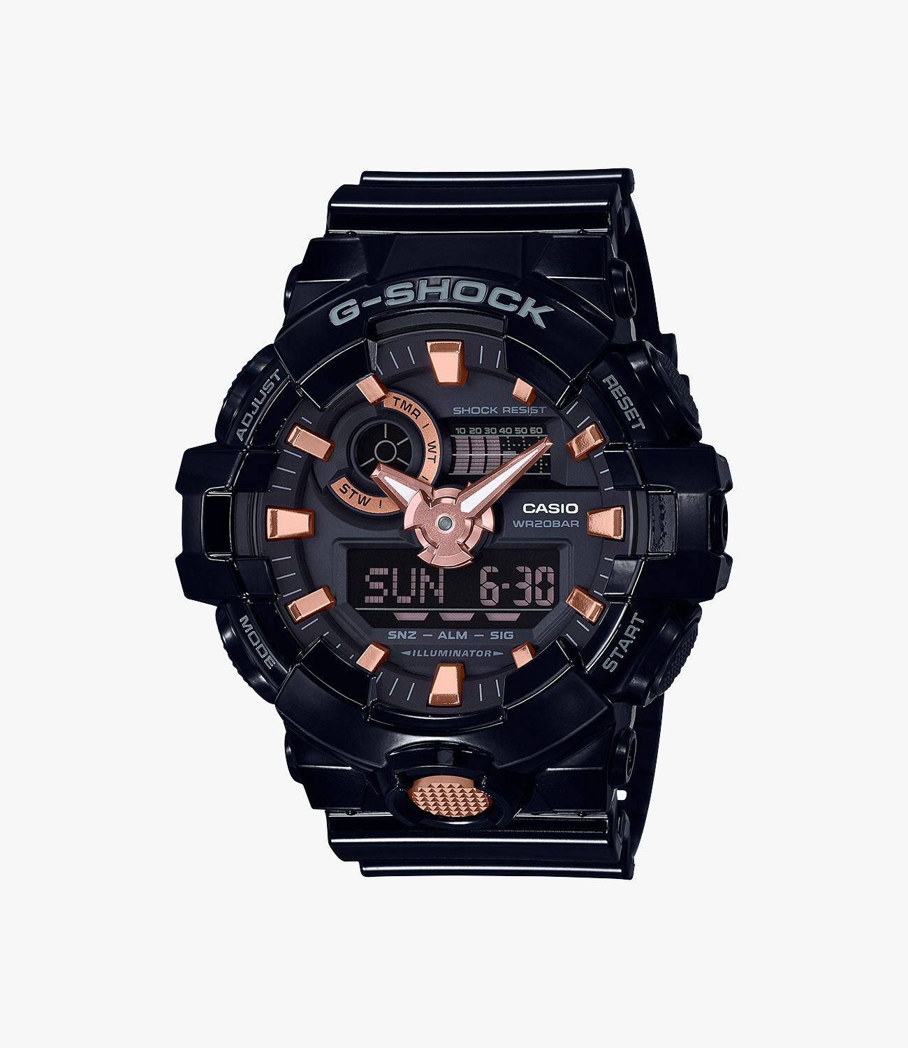 Almost all G-Shocks will have a stopwatch, a countdown timer, a backlight, and 200m of water resistance. Beyond that, Casio riffs endlessly with style and functionality, from resin-cased altimeter- and barometer-loaded models to precious-metal atomic-clock referencing dual-time world travellers. This guide should help you navigate your way to the model (or 10) that suits you.
