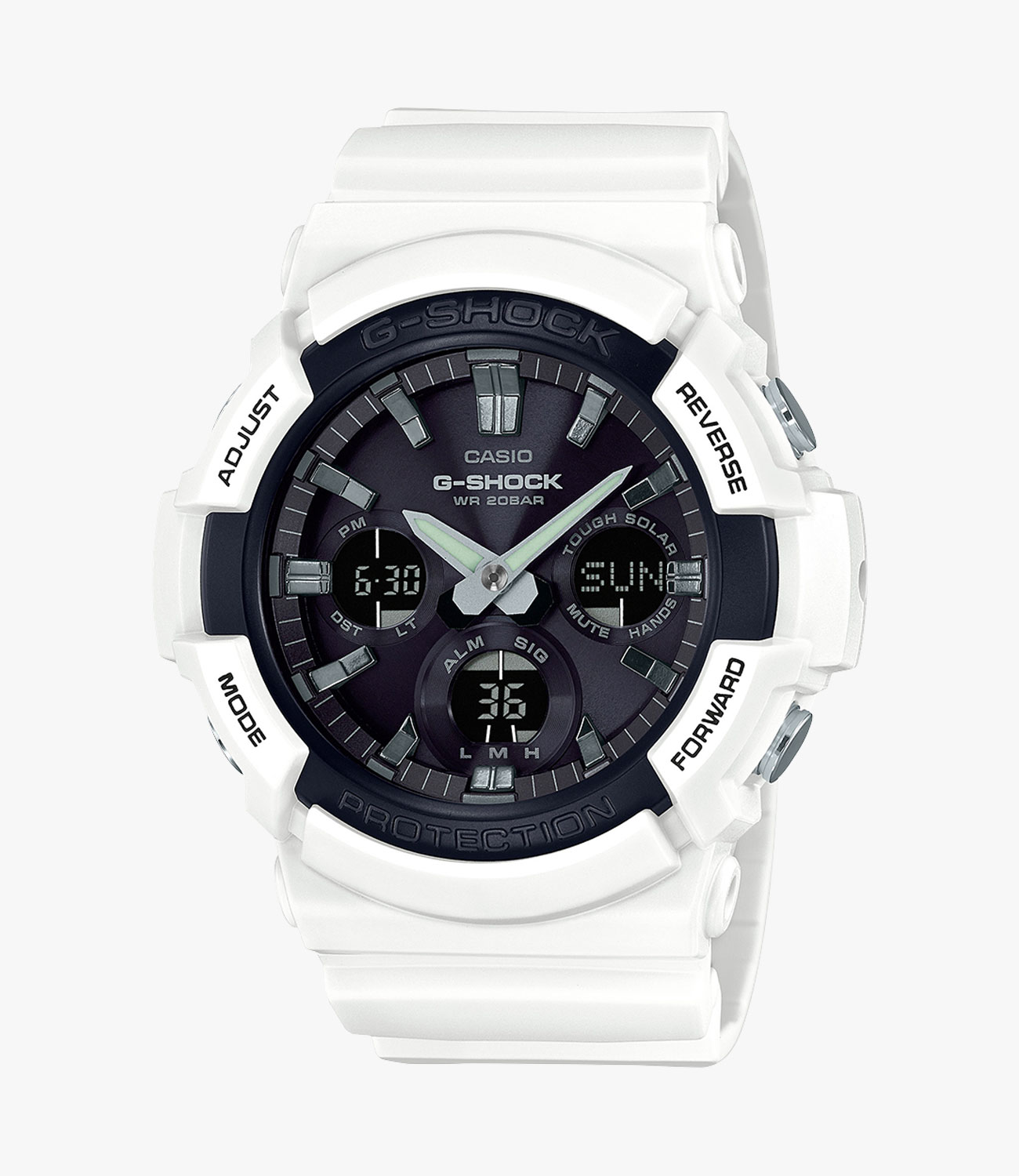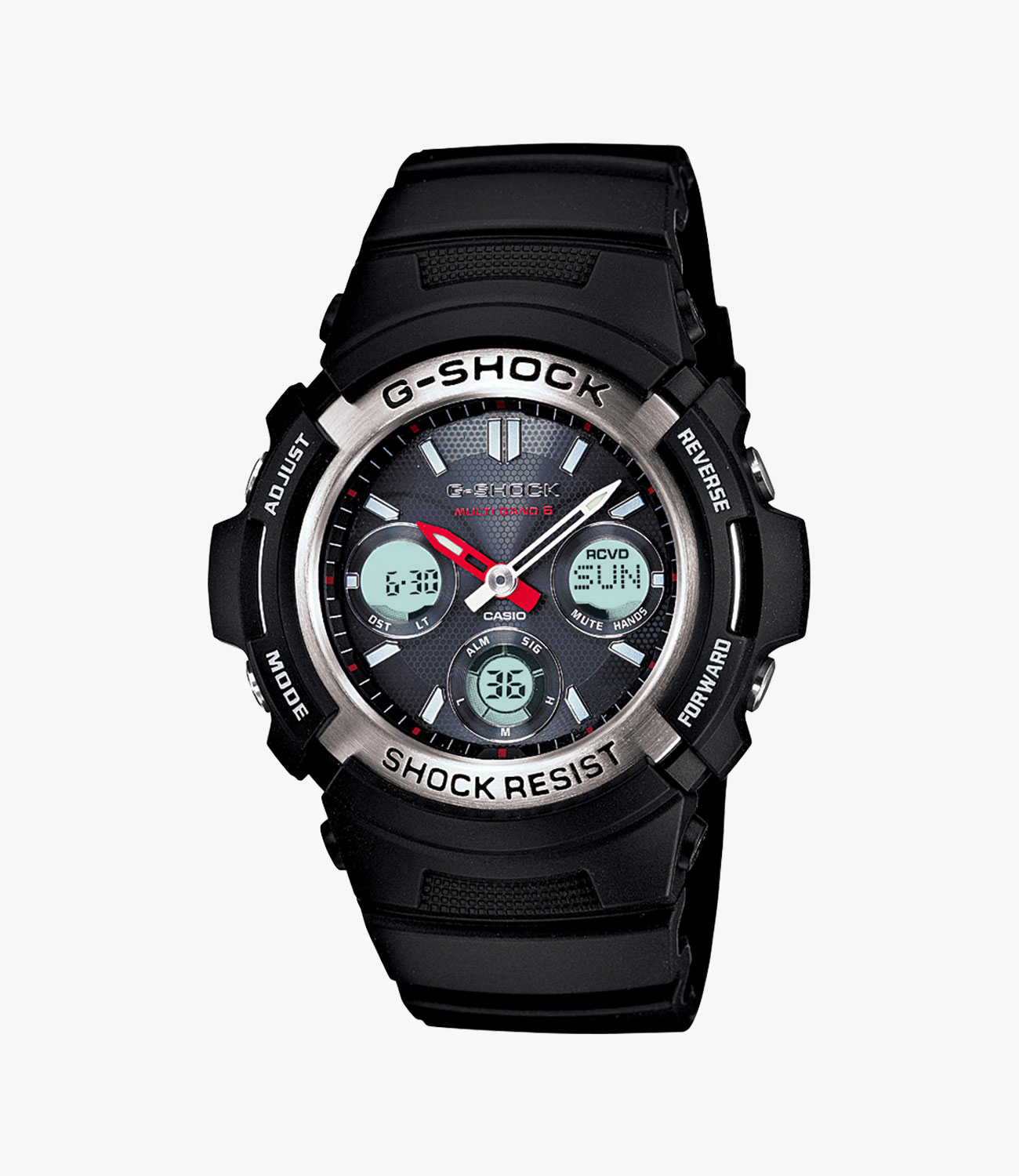 AWG-100 Series Analog/Digital G-SHOCKS: atomic clock referencing for time-zone alignment and the most accurate timekeeping on Earth, these G-SHOCKS may look more basic but hold some of today’s most advanced watch technology.