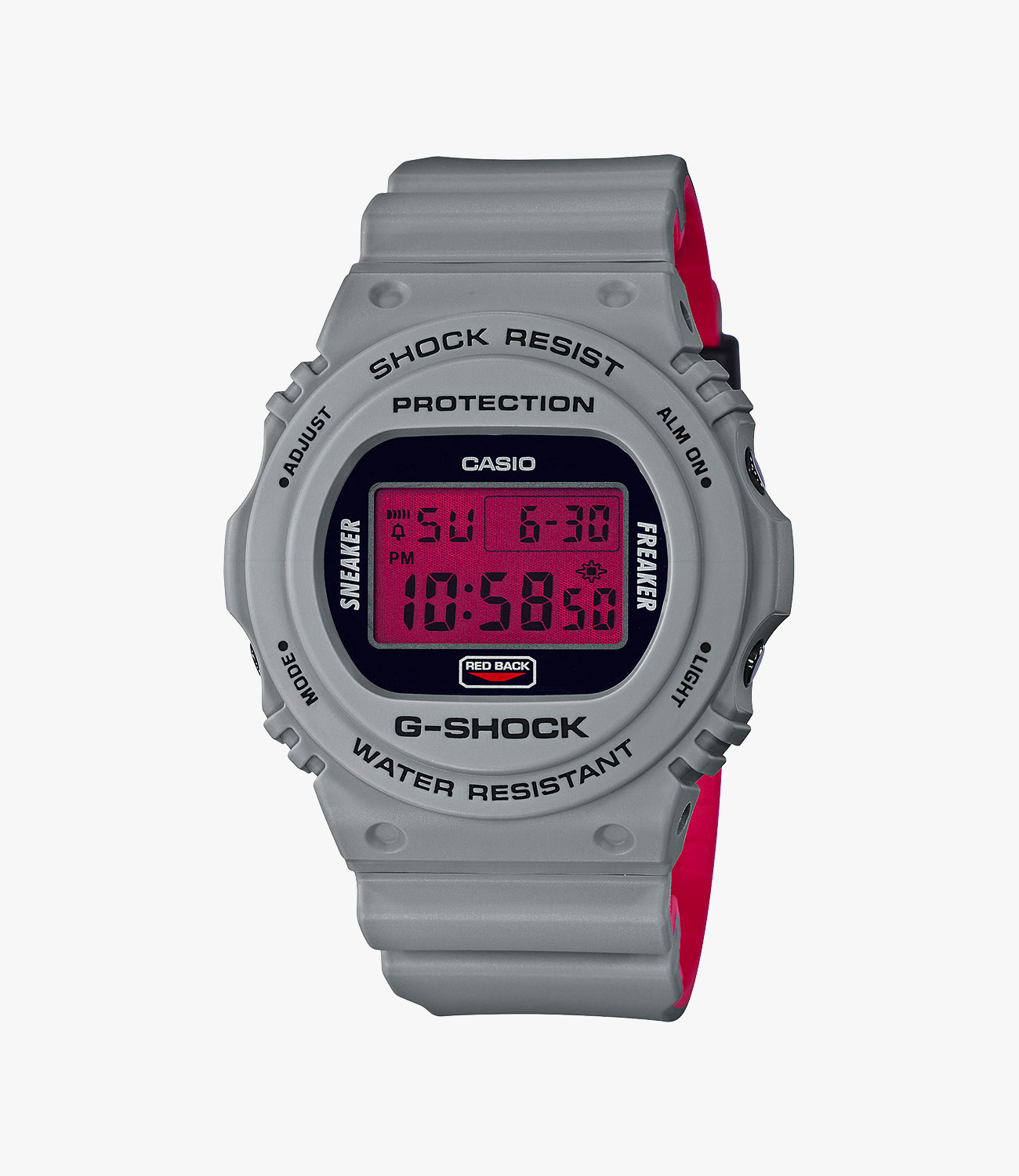 With the original gold and black colorway of the very first G-Shock of 1981, this model stays in stock for a split-second as retro-enthusiasts snatch them up. But keep and eye out and you may snag one. If you really must have this colorway, then you can get the round version (DW5735D-1B) almost anytime.