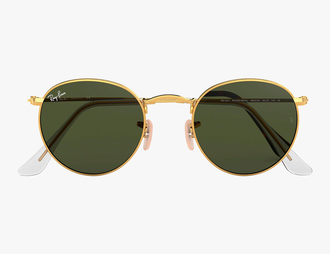Based on a design that came from the 1960’s and typically gets associated with that period’s counterculture movement, Ray-Ban’s Round Metal Classics feature green lenses and a thin wire frame in either grey or gold. The standard lens option is slightly convex but you can also find these with perfectly flat lenses to give them an even more opaque (and distinct) look.