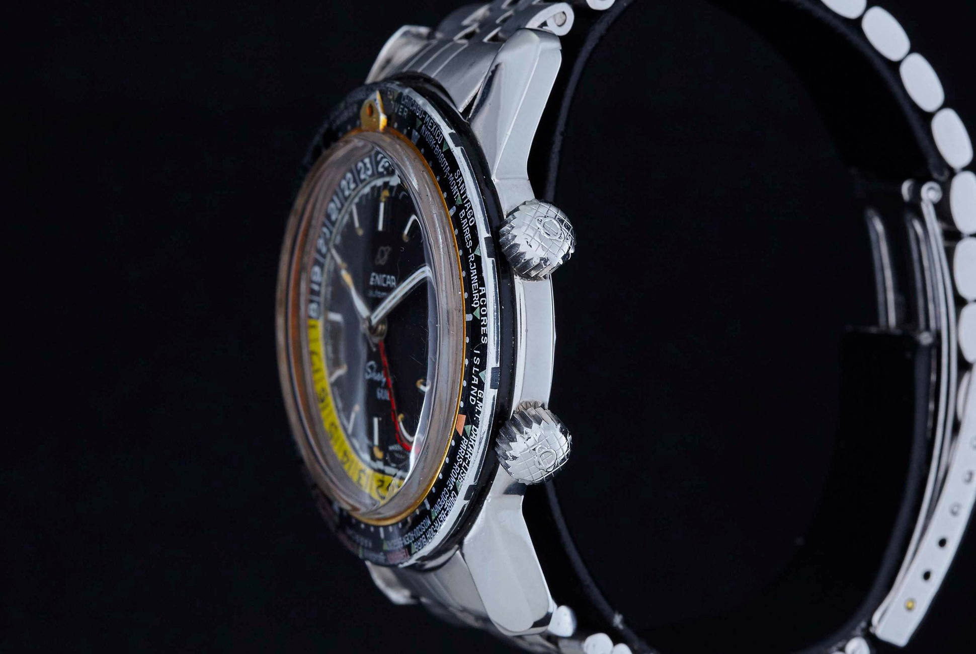 Enicar’s roots go back to the early 1900s, but as a brand, it wouldn’t hit its stride until the post-WWI years, when it started manufacturing its own movements — which it boasted as being “ultrasonically cleaned” — and venturing into tool watches. Arguably one of the most significant introductions during this time was the Seapearl 600 in the early 1950s, a time when the dive watch was entering the fray. The Seapearl, notably, didn’t feature a rotating timing bezel like the Submariner or Blancpain Fifty-Fathoms of the same era, but it was water-resistant to 600 feet and featured a dial smothered in lume.