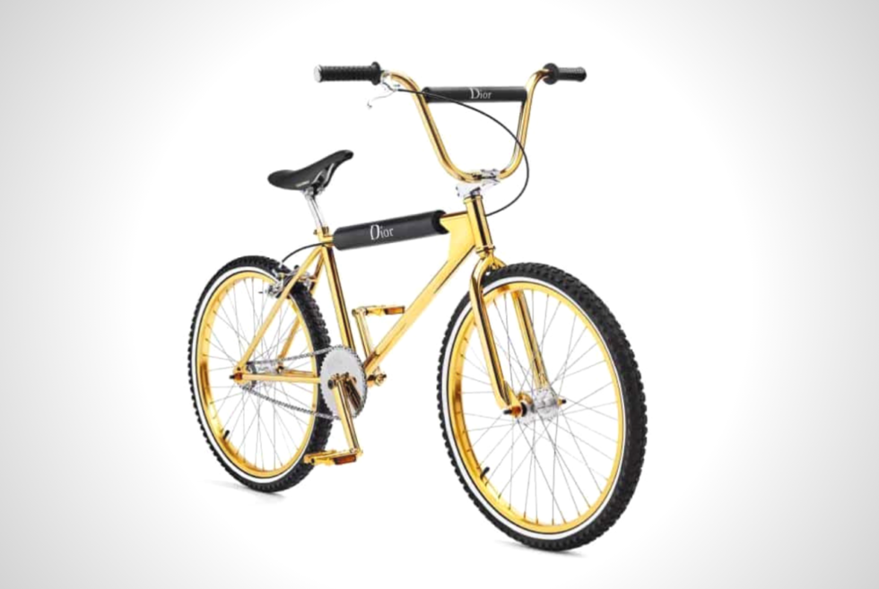 It may be a bike, but it is draped in designer features. The product was inspired by the wheel dimensions in motorcross sport with a chrome finish that oozes Dior Homme’s designs. It melts together 80s nostalgia and exclusivity class. First off, if you haven’t already noticed, the bike is Gold. Should we say more or just leave it there…okay we will say a little more. The bike’s an addition of Dior’s current gold capsule range and the gold finish is complemented with calfskin grips and a calfskin seat, premium bike parts, as well as the Dior signature engraved into the handlebars.