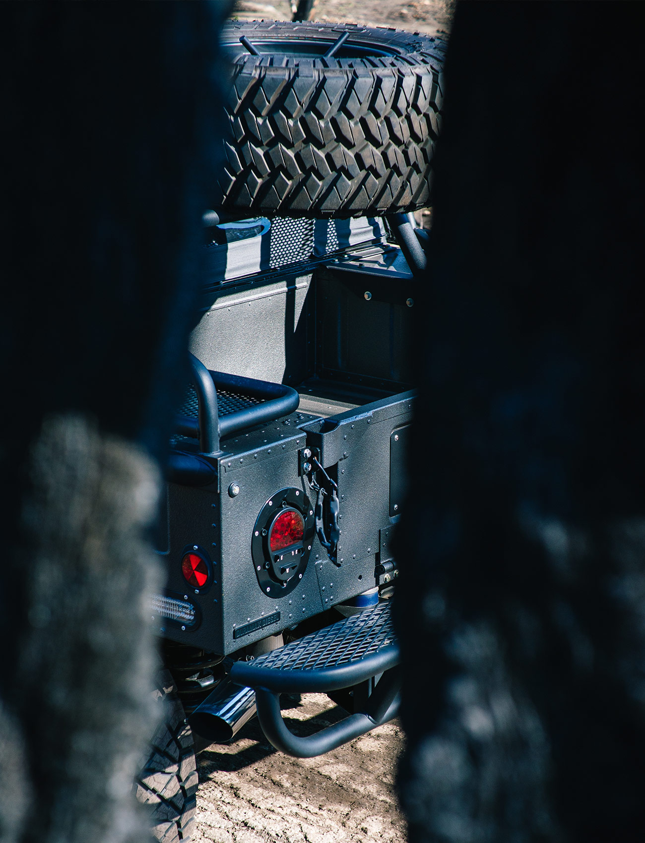 The first step in the process involves applying a gloss black powder coat to the frame and all its components to protect against corrosion. The aluminum body receives a thorough restoration from an in-house metal works specialist; Mil-Spec’s custom tri-level insulation system is also installed. The body receives a high-grade primer and coated sound/heat insulation products. Then the damn thing gets a coating of thermal deadening, sound deadening fiber — before Kevlar-infused exterior paint is applied. Adam is particularly happy with that last choice given that he grew up off-roading on trails in Michigan where branches wreak havoc on paint. Not only does Kevlar-infused paint make the truck look even more badass, but it also keeps the truck looking badass. The invisible effects of all these upgrades are equally impressive too. By significantly reducing the amount of heat around the truck’s powertrain, efficiency and performance increase greatly. Noise, vibration and harshness levels are also vastly improved by the coating process, resulting in a transformed cabin experience.