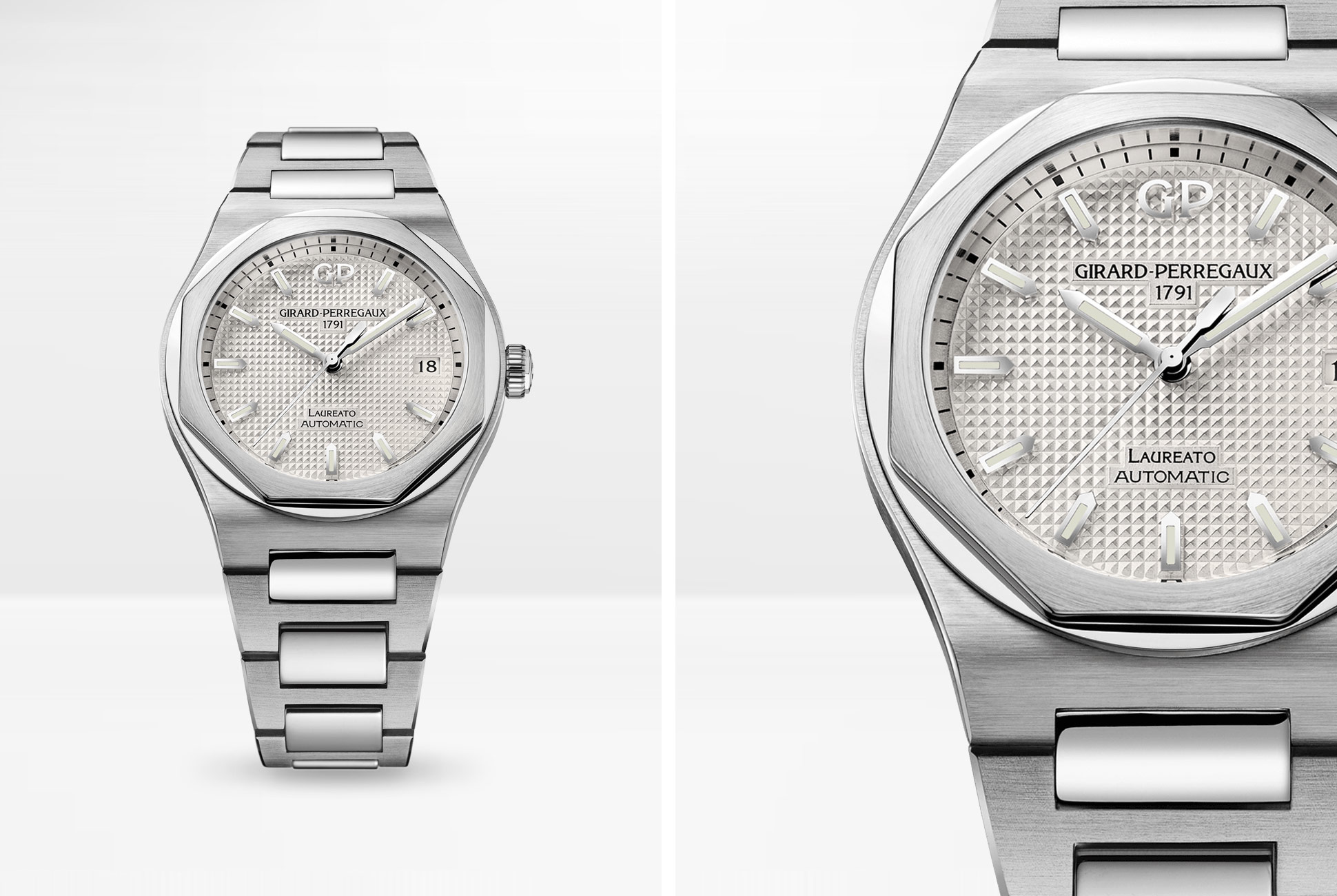 Born in the mid-1970s, amidst a sea of other Genta-inspired luxury sports watches, the Laureato is a handsome design, once forgotten, and recently revived. Like the sports watches from other watchmakers of its standing, the GP features a case and bracelet expertly finished and a dial adorned with Clau du Paris texturing. When the Laureato first came to the scene in 1975, it did so with a quartz movement, but today features an in-house automatic movement.