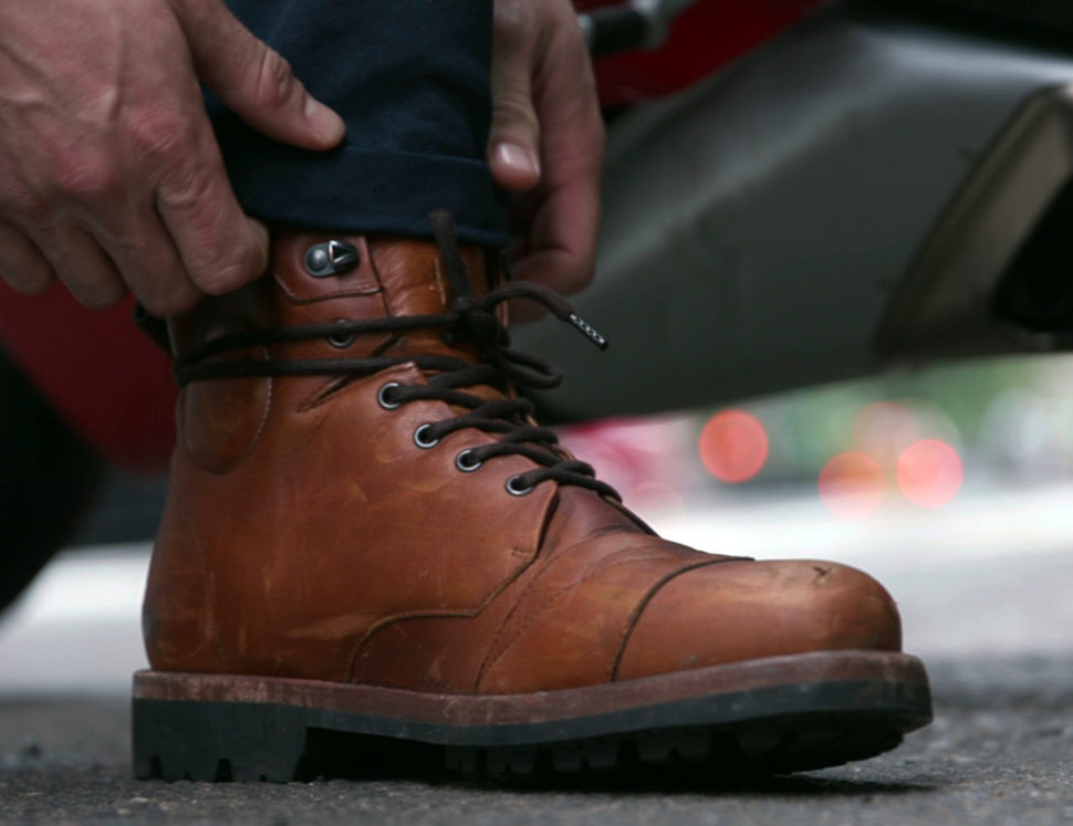 Aether’s first motorcycle boot ever is constructed with Italian leather, is 100-percent leather-lined inside and out and features reenforced toe and heal caps and D3O ankle padding for genuine on-road protection. The Moto Boot will launch in mid June and cost $595.