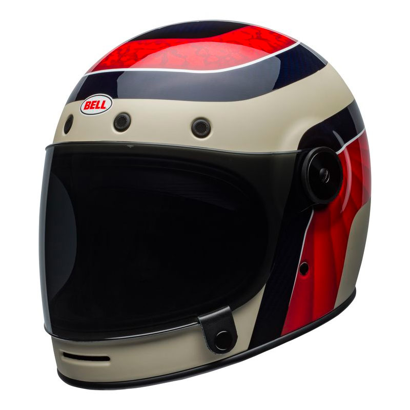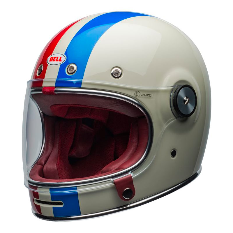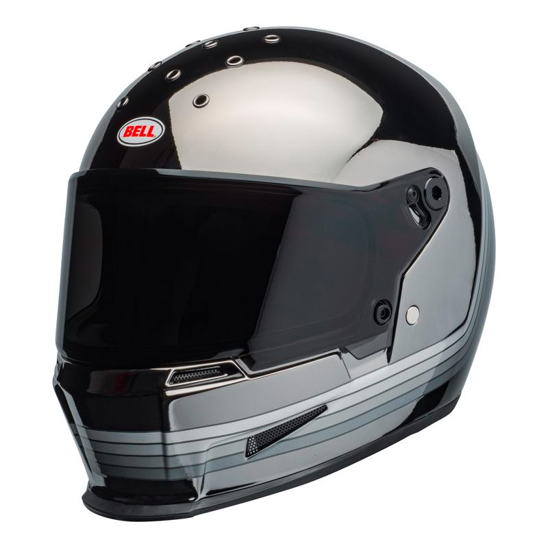 The Eliminator draws on the very first Bell helmets which were auto racing helmets, not motorcycle helmets. The tall chin bar, dirt skirt, and simple, metal-ringed intake holes were designed for the high safety standards of car racing both on the road and off. Coincidently, those features work perfectly for life on two-wheels as well. If you’re a fan of putting two wheels in the dirt, the eliminator’s design helps keep dust from making its way under and into your helmet. The rudimentary venting on the crown is meant to work with simple air and ventilation systems to keep you cool and breathing fresh air. perfect if you find yourself, in say, a bone-dry desert.