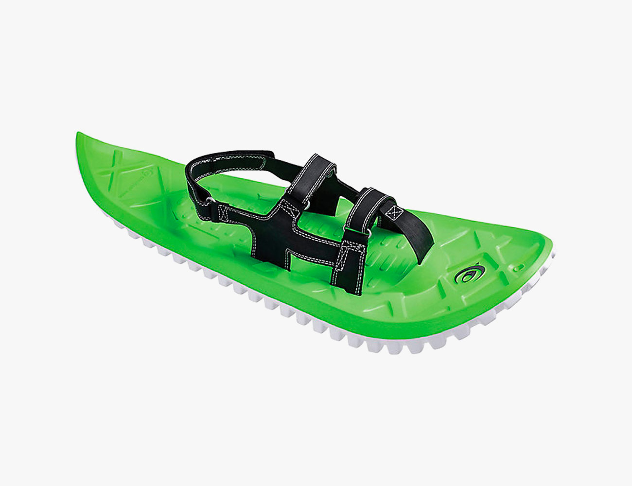 If you’re tired of post-holing on Sunday strolls but don’t want to have to deal with bulky snowshoes, Crescent Moon’s fuss-free design will win you over when you need more surface area underfoot to stay afloat. Made from foam instead of metal or plastic, the Eva V2 are incredibly light, which helps with leg fatigue and allows you to strap them to your pack without added weight. The Velcro straps are easy to use and they hold your boots in securely. While the Eva V2s won’t keep up on mountain climbs or deep, unbroken trail, Eva V2’s foam deck is quite durable on moderate inclines and flat terrain, and the rocker design has a springy feel, like a giant sneaker, so it’s easier to walk (or run) in than most snowshoes.