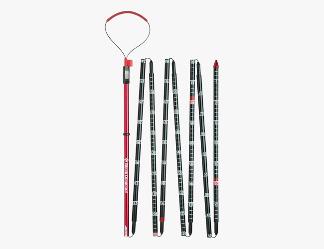 This 320-centimeter aluminum Black Diamond probe isn’t exactly lightweight at 12.3-ounces, (roughly the weight of a can of soup) though it’s undeniably durable and reliable. Design details help shave valuable seconds off of your go-time: the red handle is distinct from the black and white body and the QuickDraw pull is easy to yank into a locking position. The alloy tip is wider than the shaft, allowing it to more effectively pierce and penetrate cement-like snowpacks and unyielding debris piles.