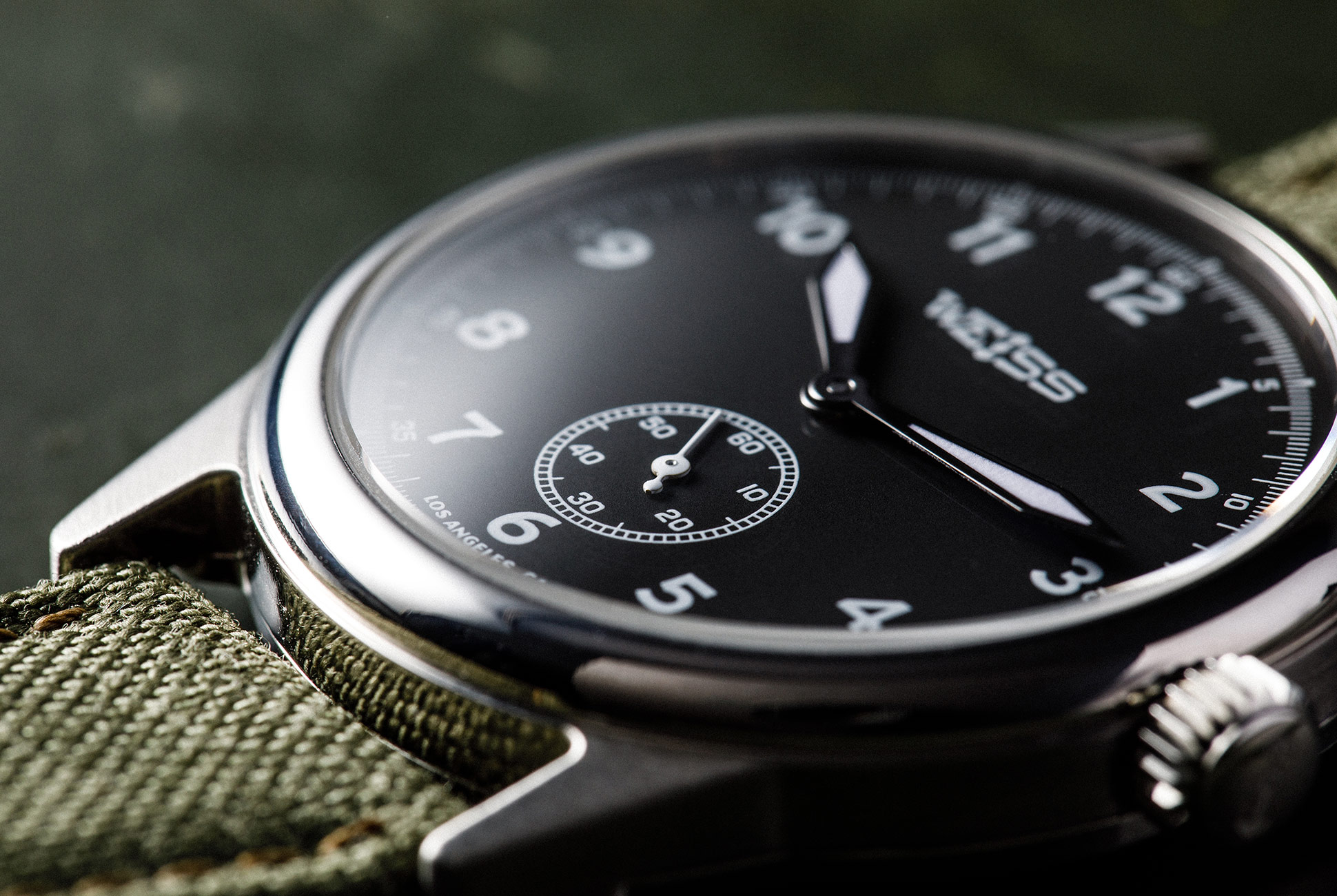 The regular GP reader is likely no stranger to the Weiss Watch Company, founded in 2013 by Cameron Weiss and based in Los Angeles, California. Weiss, a graduate of the Nicolas G. Hayek Watchmaking School and a WOSTEP Certified Watchmaker who underwent extensive training at Audemars Piguet and Vacheron Constantin, is part of a collective of new business owners striving to bring back the manufacture of mechanical timepieces to the United States. His latest offering, the 38mm Standard Issue Field Watch (from here on out the “SIFW”), is the most affordable Weiss timepiece yet, and makes the brand’s aesthetic accessible to another demographic.