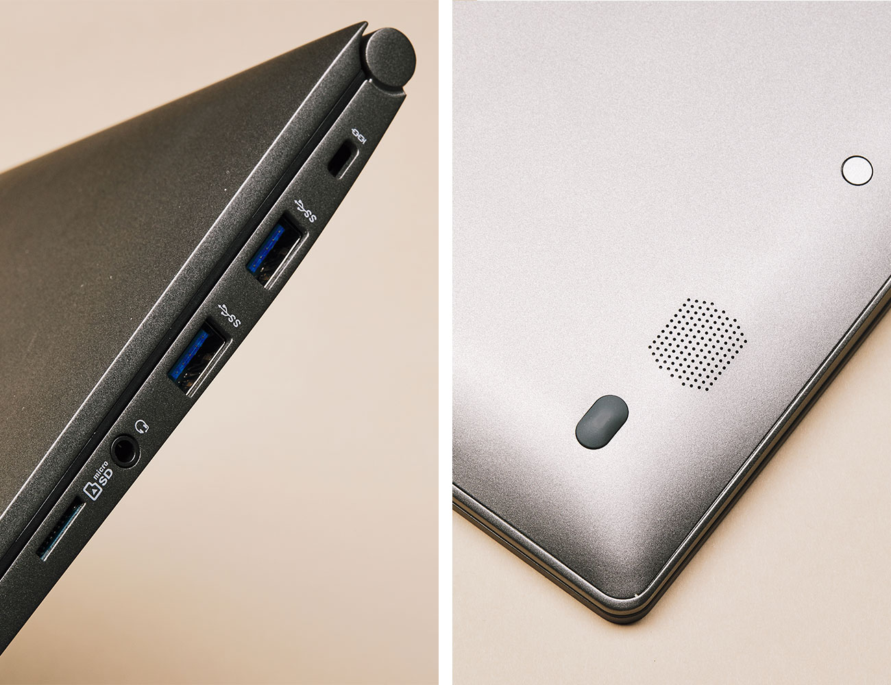 Ports: USB-A 3.0 (3x), USB-C Thunderbolt 3, HDMI 1.4, microSD card reader, headphone jack