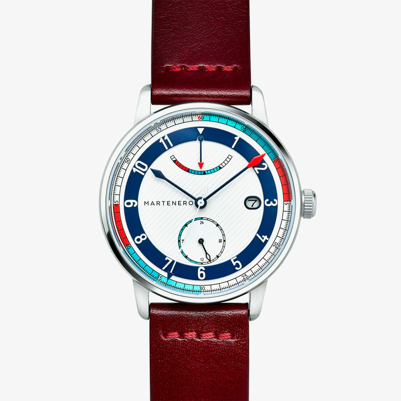 Martenero’s been bringing art deco flair to microbrand watchmaking since 2014. The brand’s initial approach included a customizable angle on dressy watches — swap a black seconds hand for an orange one, say, and decide whether that should be set against a navy or white dial. In recent years, that approach has been nixed in favor of providing a number of set colorways and combinations. It still works. And the brand has matured especially with its last two watches, the Edgemere Reserve, an update on the unique nautical look of their original Edgemere, and the Kerrison, which sharpens the aesthetics of the brands earlier, more reserved dress watches.