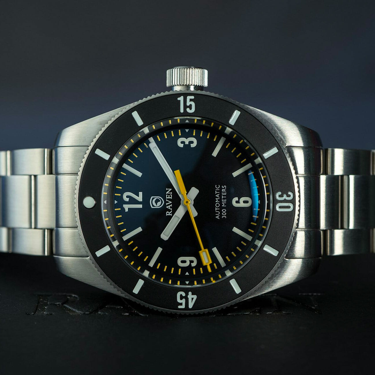 Its watches have been borne, since 2008, out of a self-admitted obsession with Rolex divers. And Raven does the homage watch well: those early models captured the cool style of vintage Submariners, with Miyota movements and without the Rolex price tag. Their current line has kept the cool, but shied away from the Rolex worship. Each chunky diver does its own thing — the Trekker at a smaller 40mm, the Venture at 42mm with pops of color, the Titanium Deep as a bezel-y monster, the Endeavor a 44mm classic and powered by the ubiquitous ETA 2824-2 automatic. Each is under $1,000.