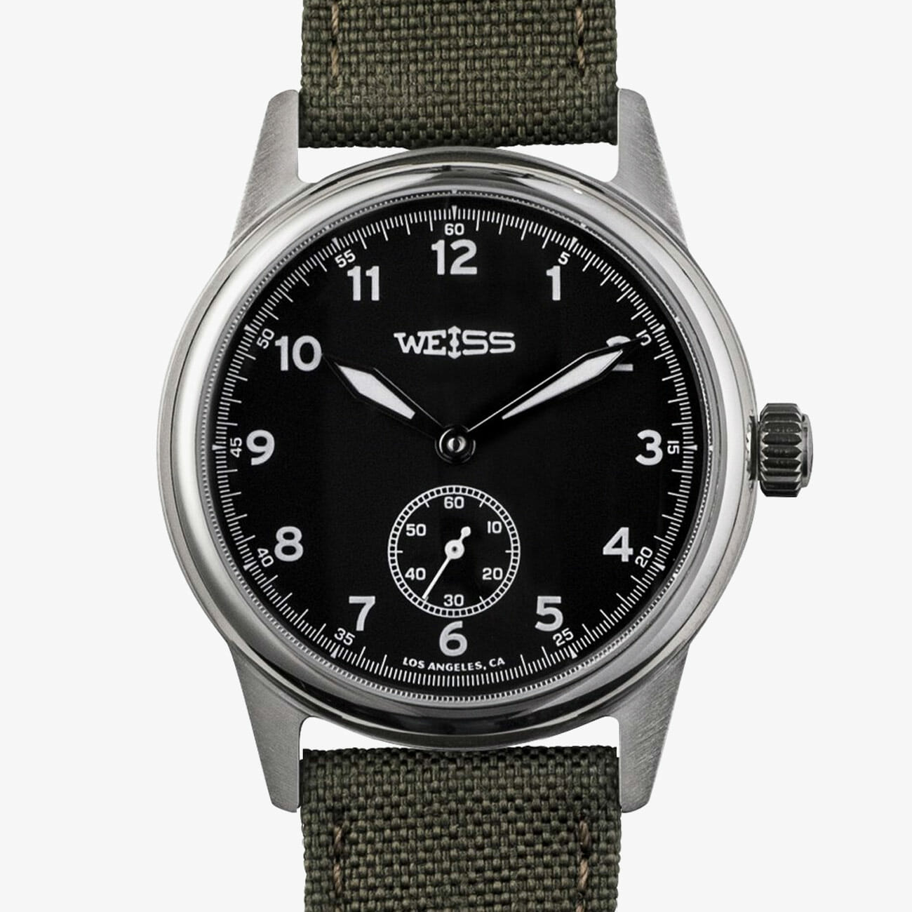 What does a fully American-made watch look like? Weiss has done more to edge us toward the answer to that question than any other new brand in the past ten years. Their 42mm American Issue Field watch has a case, dial and sapphire crystal made in the US,and its Cal 1003 movement is mostly manufactured in the US, too. Their new 38mm Field Issue opened their classic design to those with smaller wrists, and they just released a very limited edition “Gauge Series” with a cool new, Land Rover-inspired look.