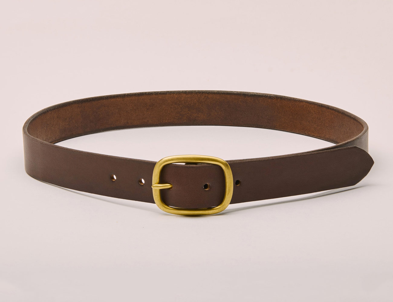 Based in New York City, Maximum Henry has a curated selection of leather goods devoid of ostentatious branding. Made from Belgian vegetable-tanned leather, the brand’s Oval Belt is appropriate for a range of styles and is available in black, brown, blue, natural, orange and red.