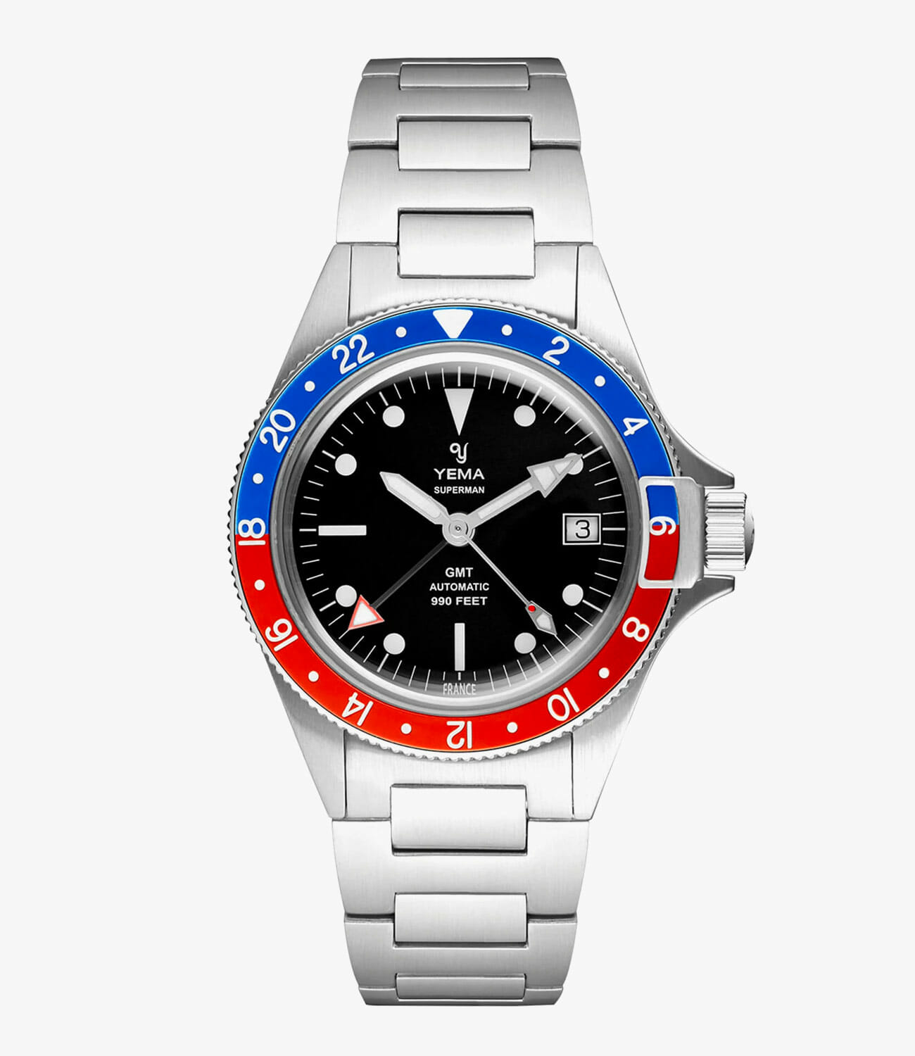 Essentially a GMT-adapted version of Yema’s flagship dive watch, the Superman, the Heritage GMT is available in 3 Rolex-derived bezel color varieties, each limited to 100 pieces. With 300m of water resistance and a Swiss ETA movement powering its time-tracking capabilities, this Yema is another candidate for the mythical “one watch.” Just be prepared for people to confuse it with a certain watch from Rolex…