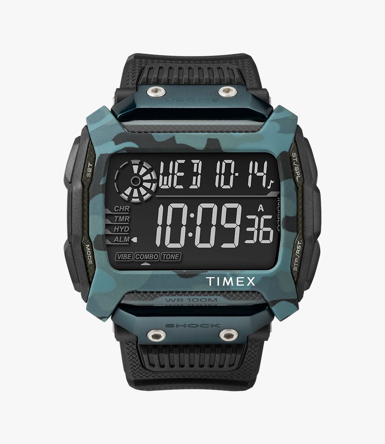 Crafted in a mold similar to that of the G-Shock, the Timex Command Collection of watches is built to take a beating. Water-resistant to 100m as well as heavily shock-resistant, they feature Indiglo light-up dials, durable metal and resin cases and stopwatch and countdown timers.