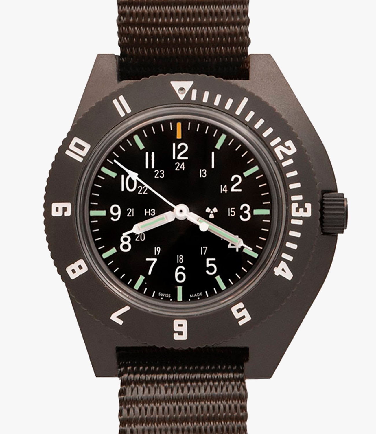 A little tank on your wrist. If all you need is the time and date, this thing will survive quite literally anything you can throw at it (trust us — we know from experience). The tritium tubes provide illumination so bright you’ll be forced to cover the watch on night exercises, should you go on any. Also: we have SCUBA dived with thing.