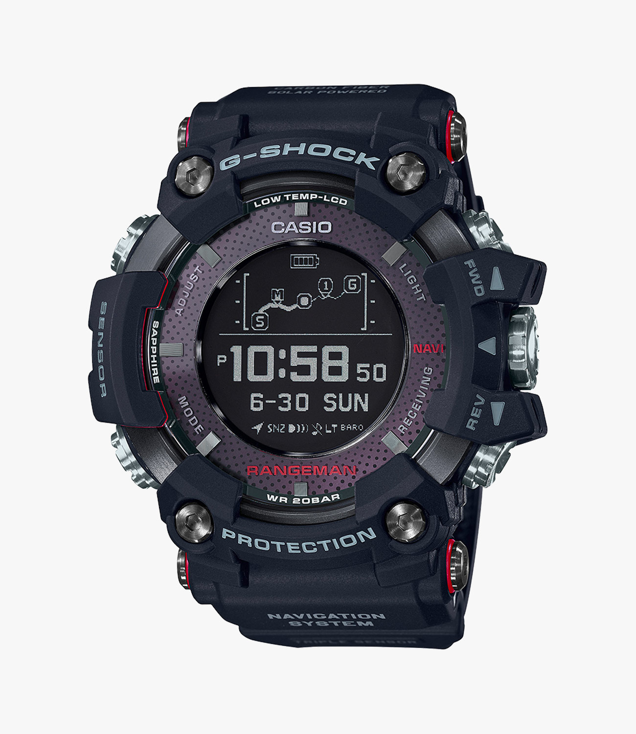 If for some reason a standard G-Shock isn’t tough enough for you, then the Rangeman is probably your watch. Featuring a Triple Sensor to measure compass bearing, atmospheric pressure/altitude, and temperature, this is a true survival watch. It also features GPS-enabled navigation and pairs with the G-Shock Connected app.