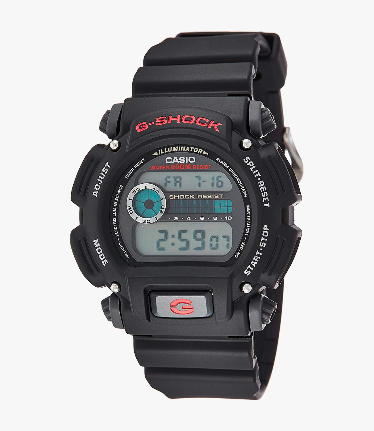 If it ain’t broke, don’t fix it. A longtime favorite of military personnel, this fairly basic G-Shock has everything you need, and nothing you don’t: 200m of water resistance, an ultra-durable resin body, a multi-function alarm, 1/100-second stopwatch, hourly time signal, auto calendar, and 12/24 hour time formats.