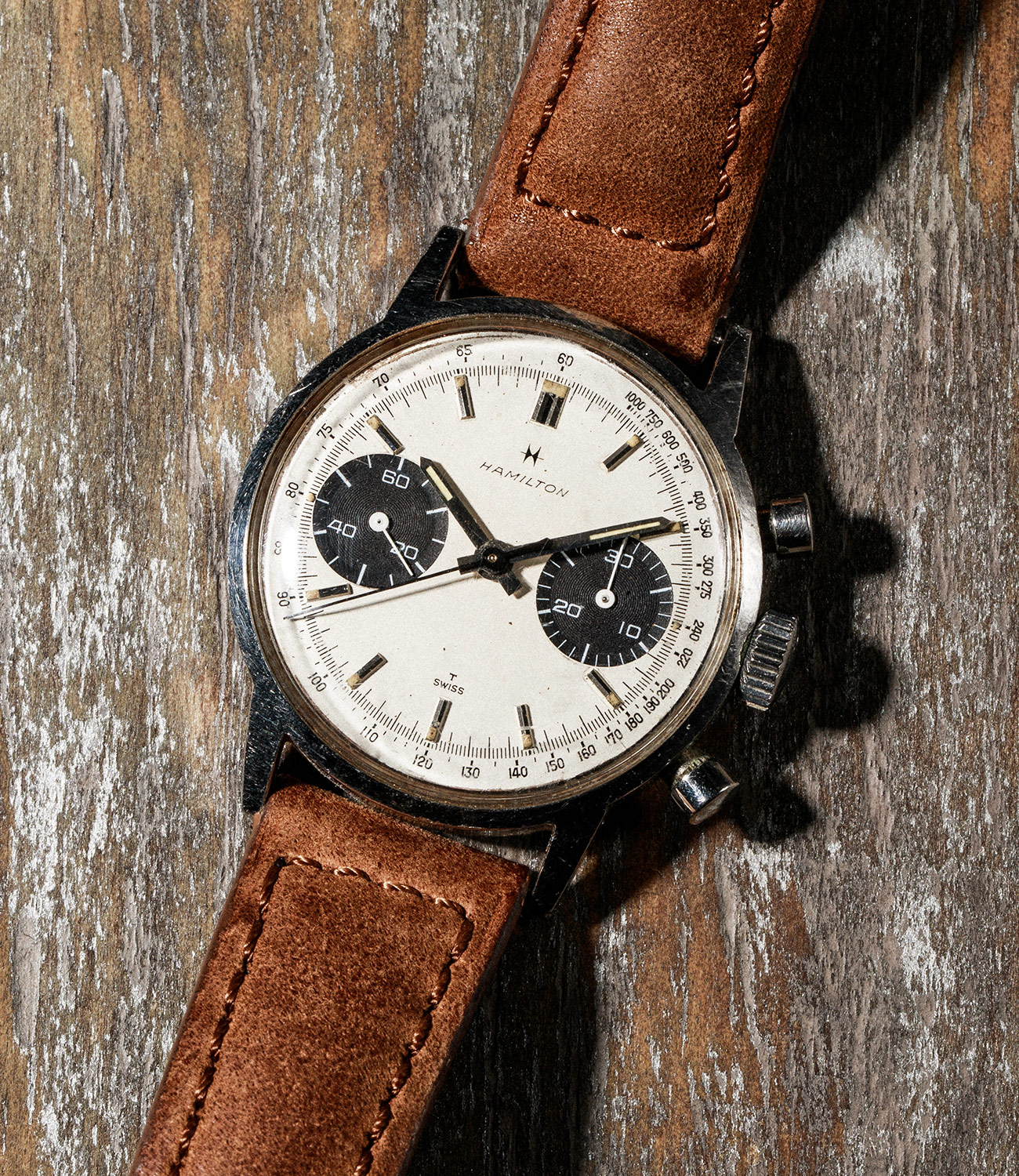 In the 1960s, which is the era this watch comes from, Heuer was the brand to get and their chronographs were indomitable. Hamilton entered their foray with this watch, which would go on to become a “poor man’s Heuer.” With a bit of Google-ing, I’ve come to learn that it’s powered by a Landeron 248 movement, which would go on to become the hardy Valjoux 7733. Hamilton nailed the design of this watch by giving it two black registers and a creamy dial and the look has endured over the decades with an irresistible mix of tropical patina and panda dial. I can’t wait to see how it ages over the next couple of decades when I pass it on. — Eric Yang, Founder, Editor In Chief
