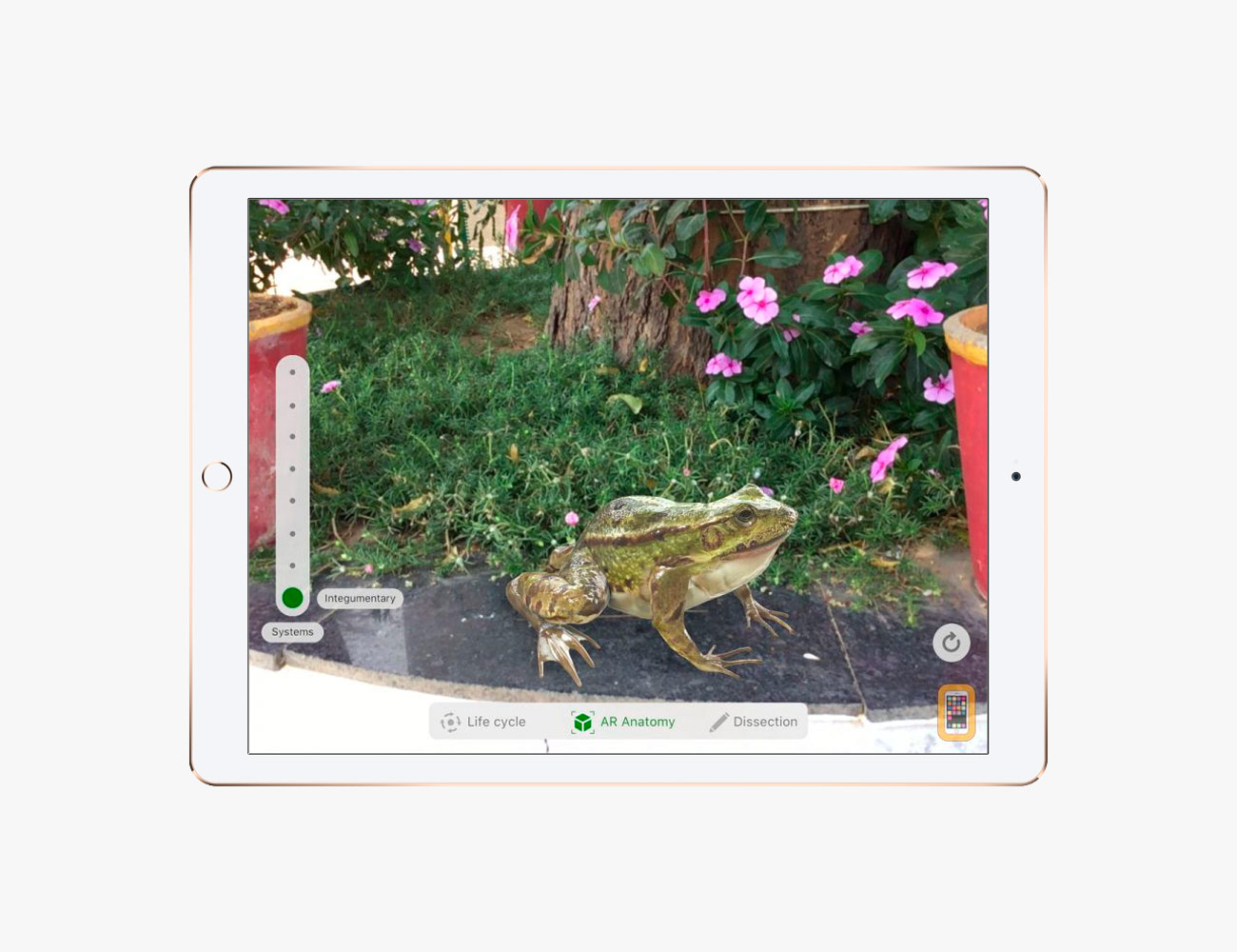 This is an interactive and educational iPad game that leverages AR to help you explore the life cycle of a frog, from a celled egg to a tadpole to a fully-grown frog. You also dissect it.